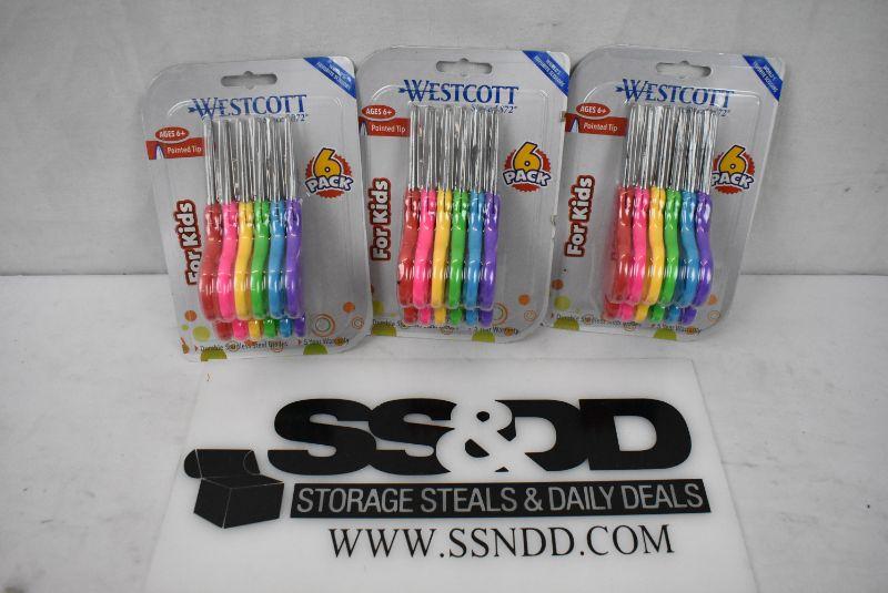 3 packages Westcott 5" Pointed Kids Scissors 6 Count Classpack, Assorted Colors - New