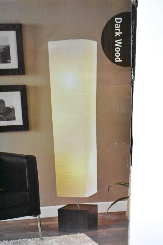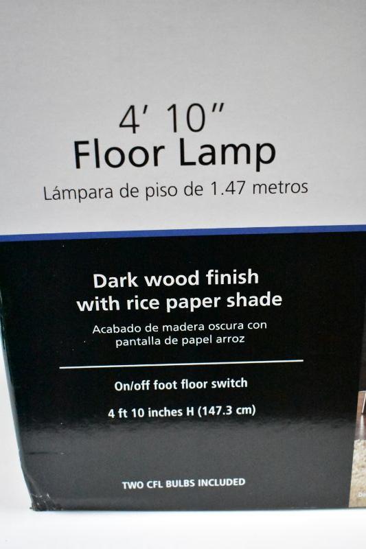 4' 10" Floor Lamp, Dark Wood Finish with Rice Paper Shade - Like New Condition