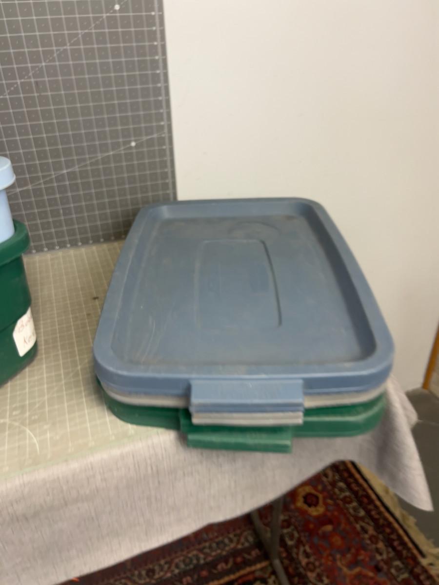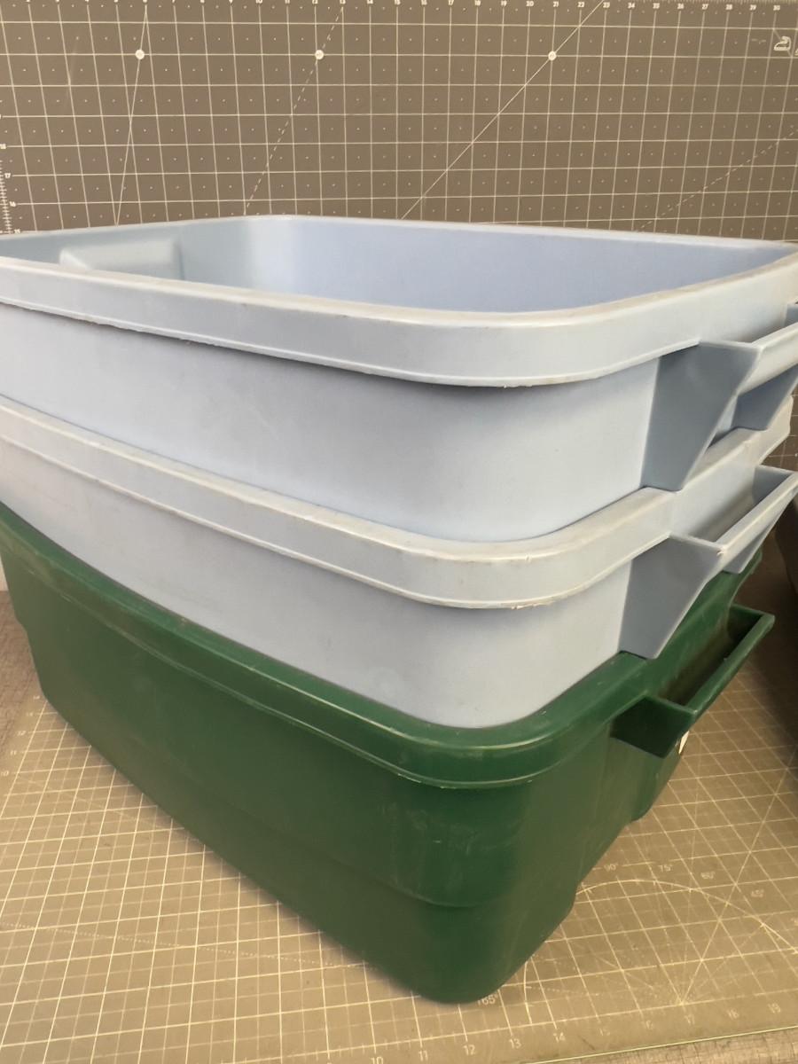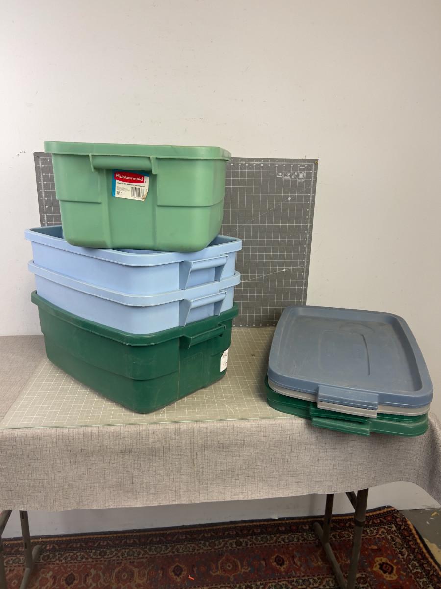 (4) 10 Gallon RUBBERMAID Tubs with Lids