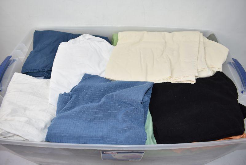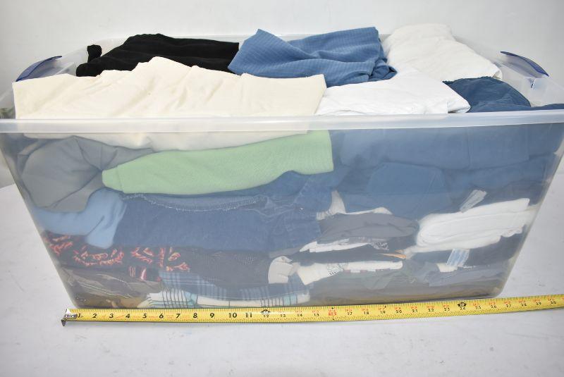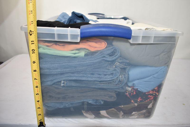 #4 105 Quart Clear Bin (with Clear Lid) Full of Men's and Women's Clothing: Mostly Sizes Large-2XL