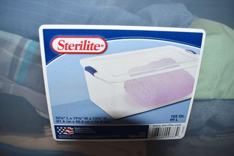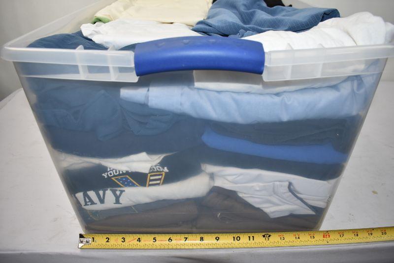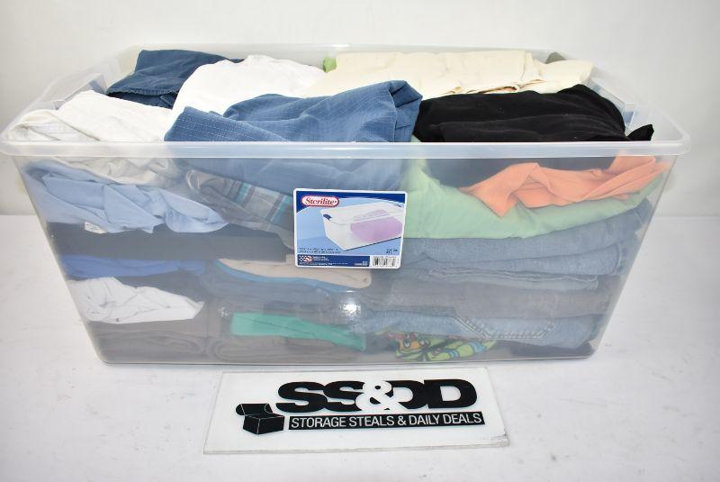 #4 105 Quart Clear Bin & Lid, Men's & Women's Clothing: Mostly Sizes Large-2XL
