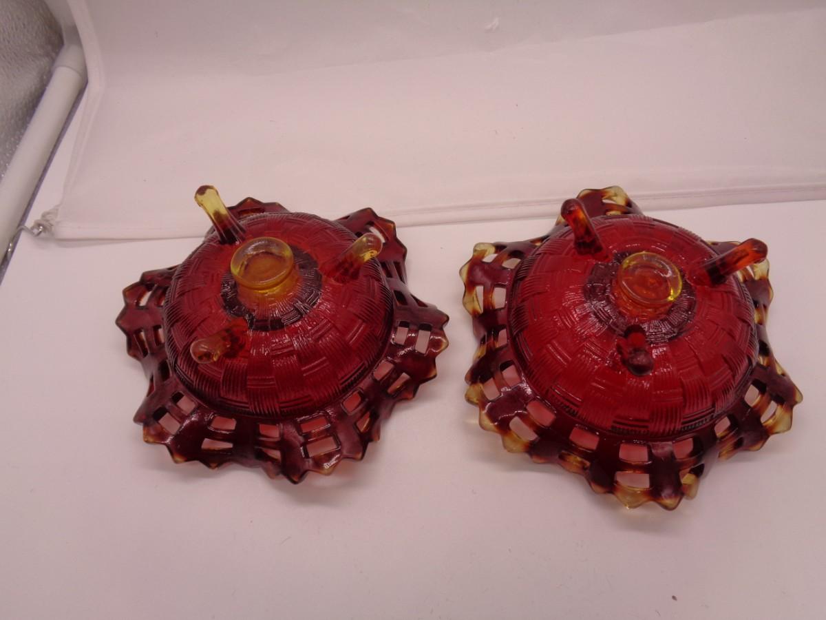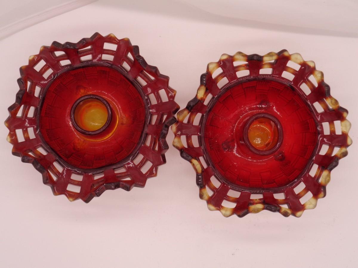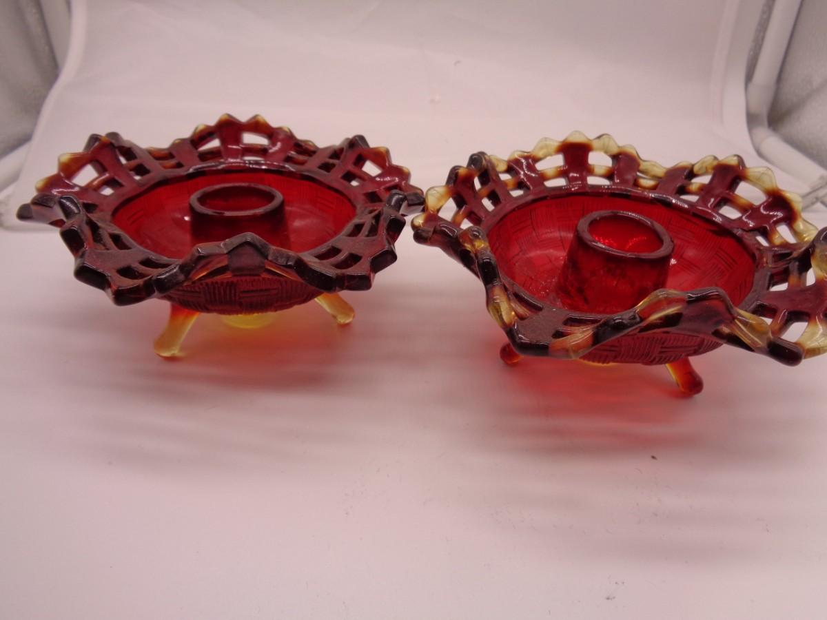 4 1/2" Fenton "Mandarin Red" Open Edge Candle Holders #47