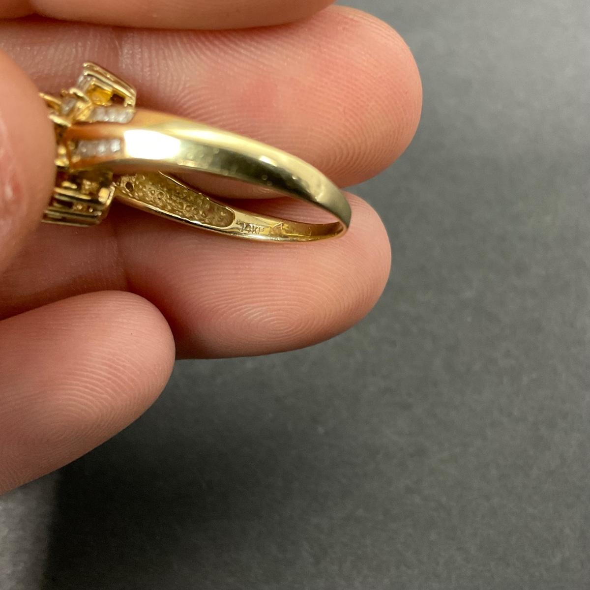 One vintage 14K P marked gold tested diamond and precious stone ring. 2.2 DWT total weight. This piece is a size 6. Please see photos for details and condition. Any condition statement is given as a courtesy to a client, is an opinion, and should not be treated as a statement of fact. Reference to condition written, oral or within a condition report shall not be regarded as a full account of condition and may not include all defects, alterations, or restorations. Absence of a condition report does not imply a lot is flawless or lacking imperfections or damage. Katherine’s Auction & Appraisal Service shall have no responsibility for any error or omission. Returns shall not be accepted on the basis of condition. ::: Shipping is available on this lot. If you require shipping you must let us know at the close of the auction. We will coordinate with you after the item has been won. Shipping fees will include insurance up to or exceeding the value of all items being mailed. If you have any questions regarding this lot please contact the auctioneer either via this website, by direct email or by phone. PICK UP TIMES and other important information can be found in the TERMS and DESCRIPTION of the auction. Please take a look for pertinent information. Thanks!