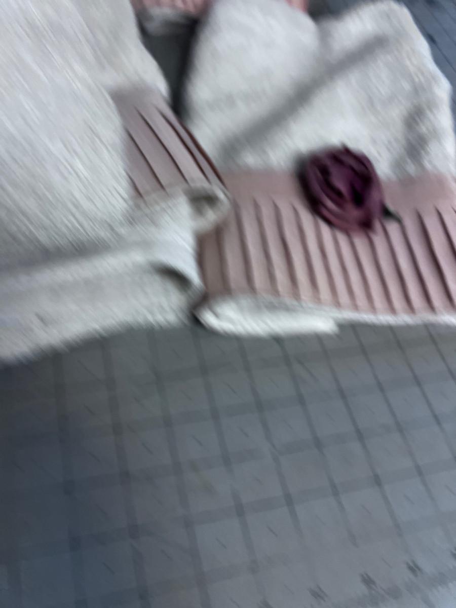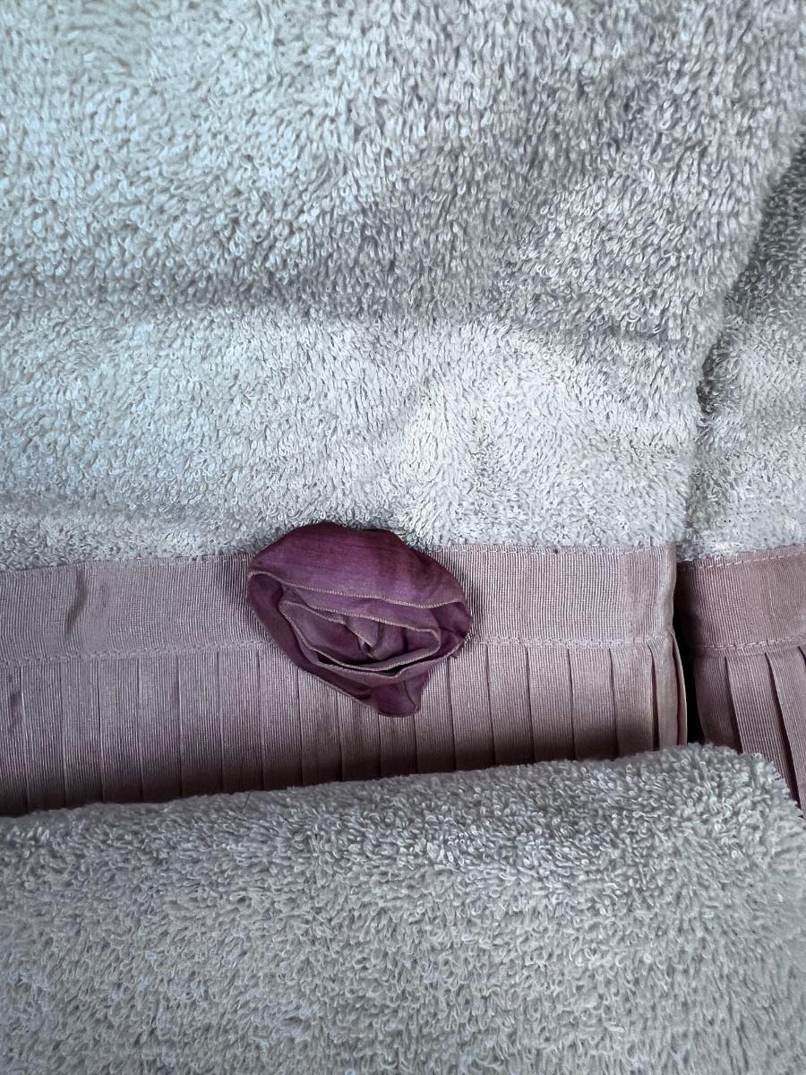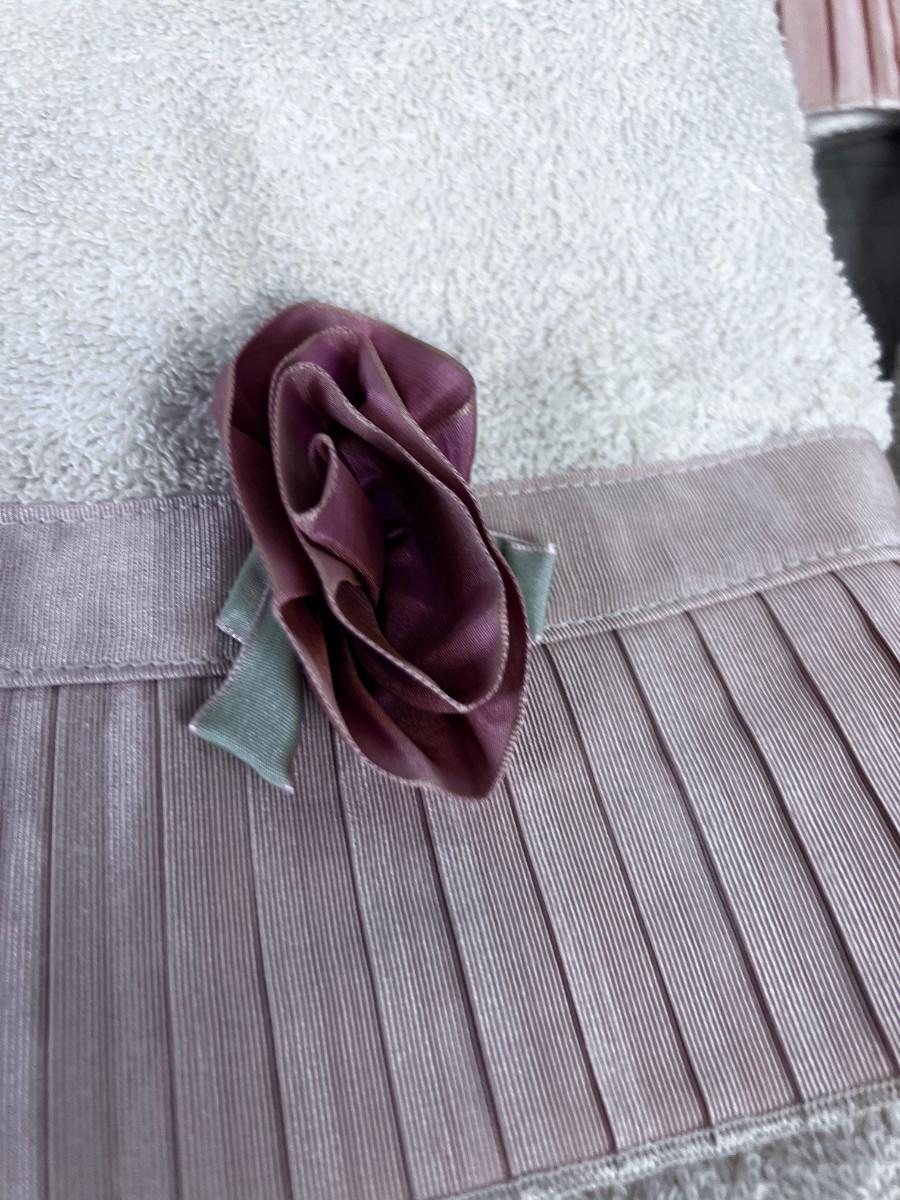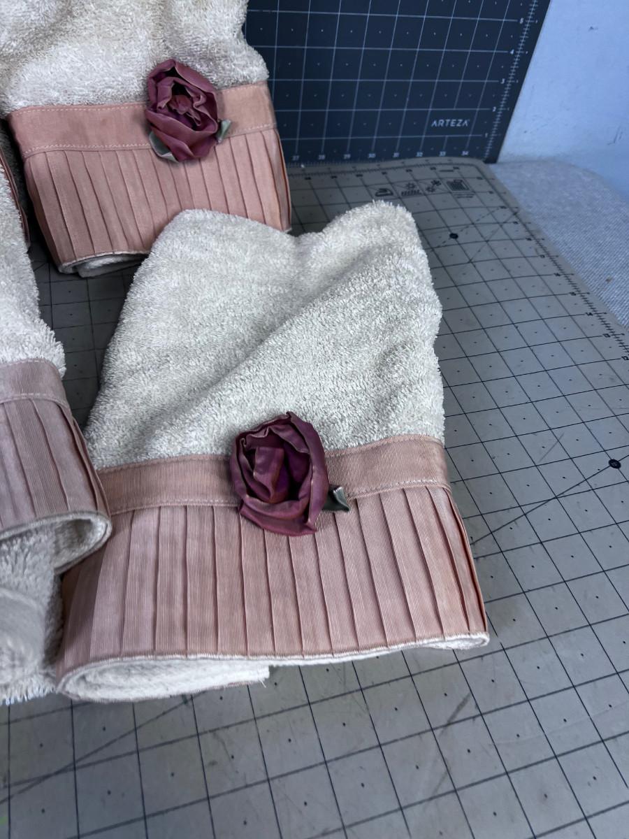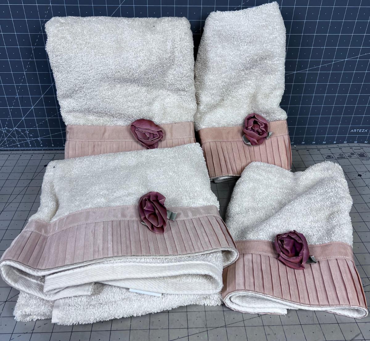 (4) 2 Hand & 2 Bath Towels, Cream & Dusty Rose with a Rose