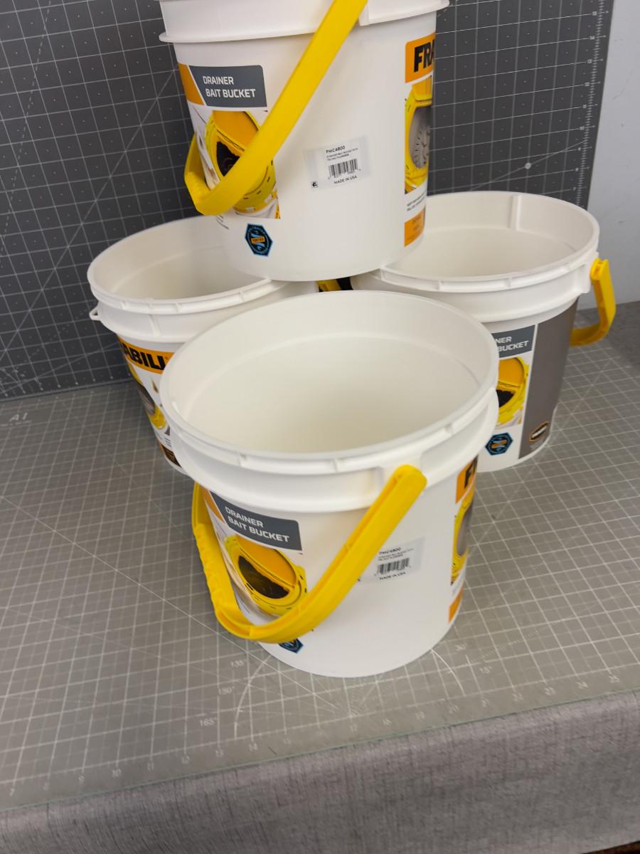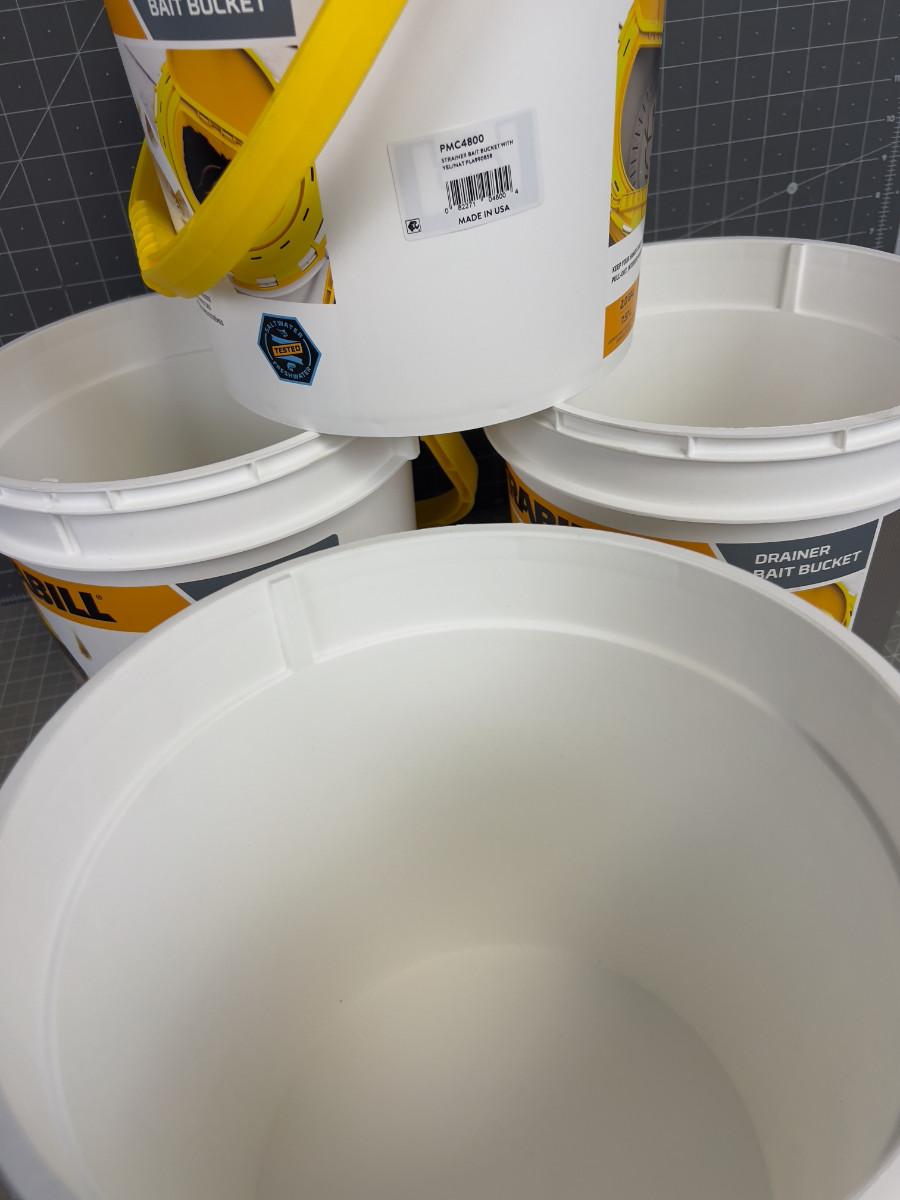 NO Strainer for bait, but heavy duty for gardening. NEW