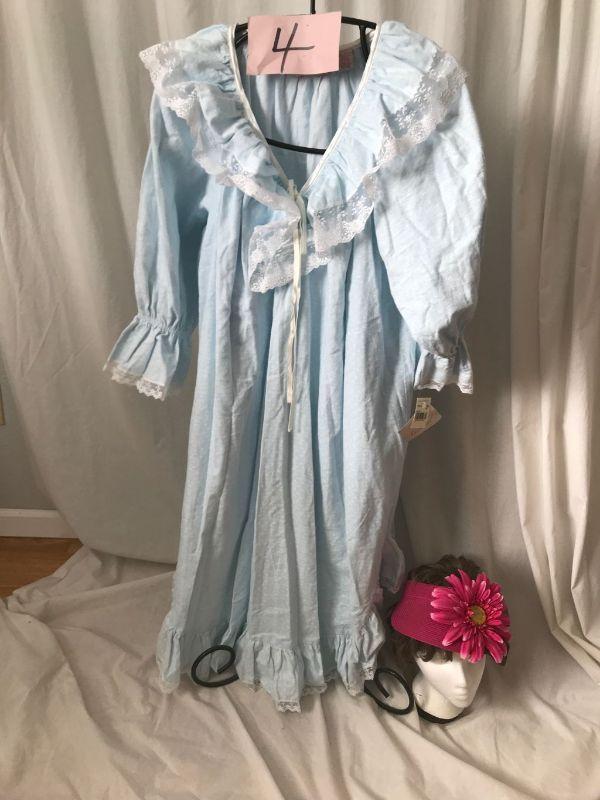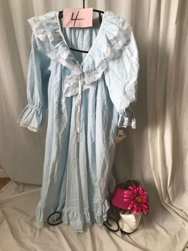 4-Mervyns New Vintage Gilead Flannel Nightgown Size L-Wig and Head Form and Pink Visor w/ Flower