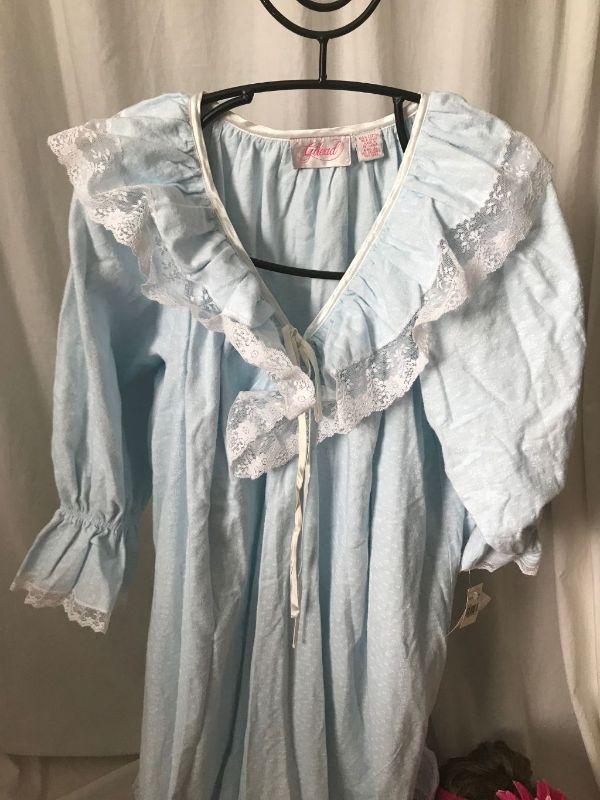 4 Mervyn's New Vintage Gilead Blue Flannel Nightgown Size L 100% Cotton