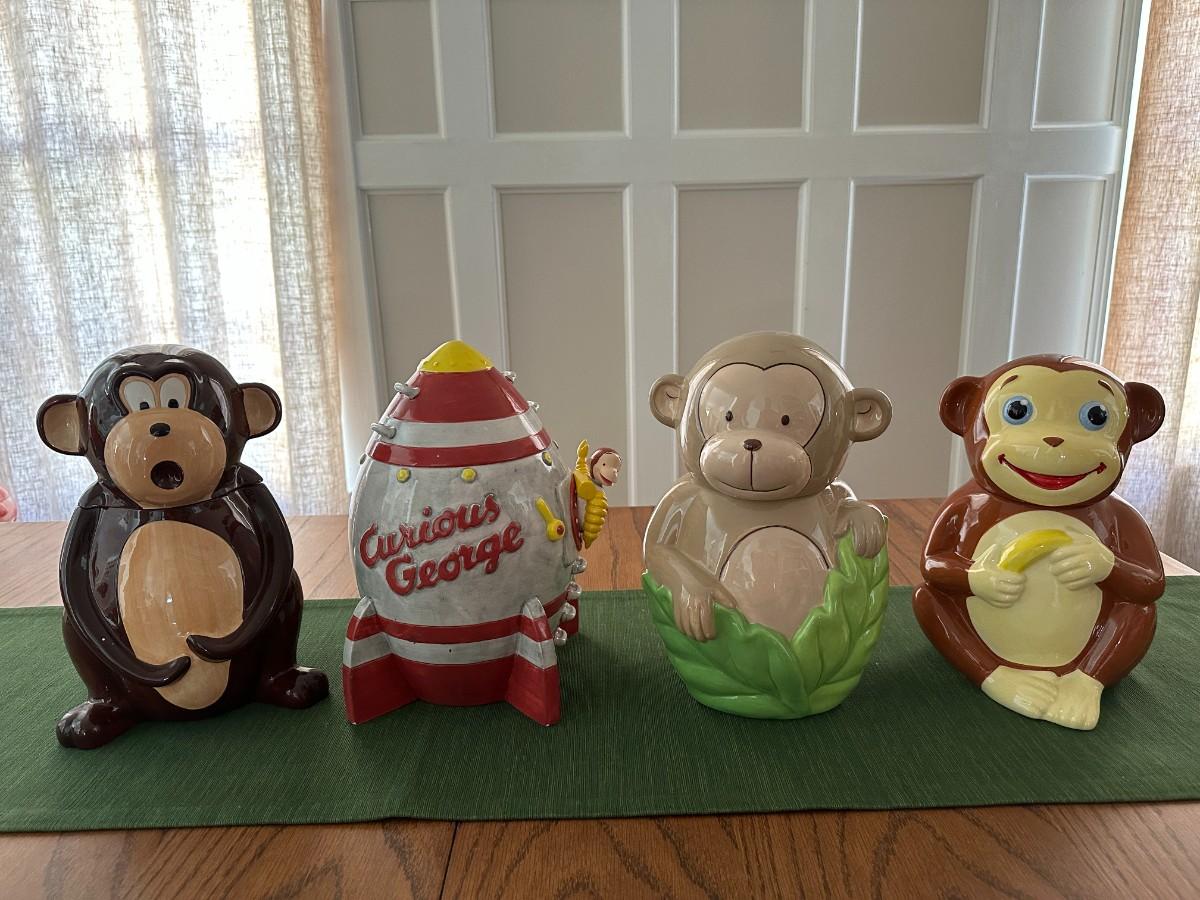 4 Adorable Monkey Cookie Jars, including Courious George!