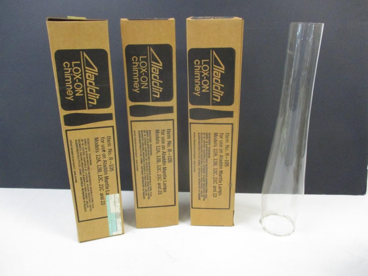 The Aladdin Lox-on Chimneys are decorative and functional lighting parts designed for use with Aladdin lamps. These chimneys are specially crafted to provide a secure and stable fit, ensuring the proper functioning of the lamp's flame and creating a unique and elegant look. Perfect for collectors or those seeking to enhance their home decor with a touch of vintage charm, Aladdin Lox-on Chimneys are a stylish addition to any lighting fixture.