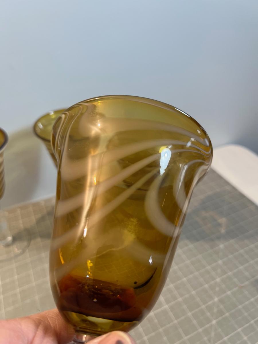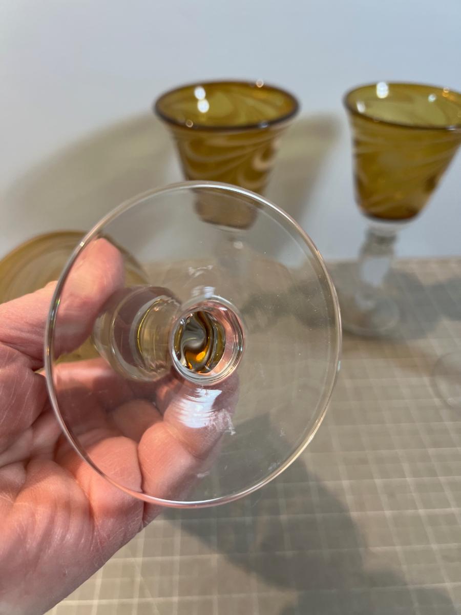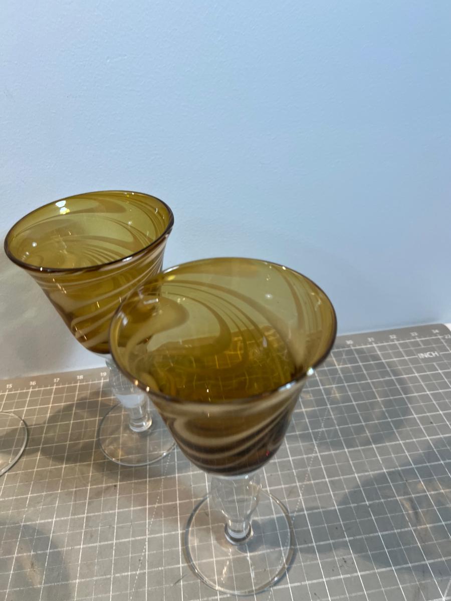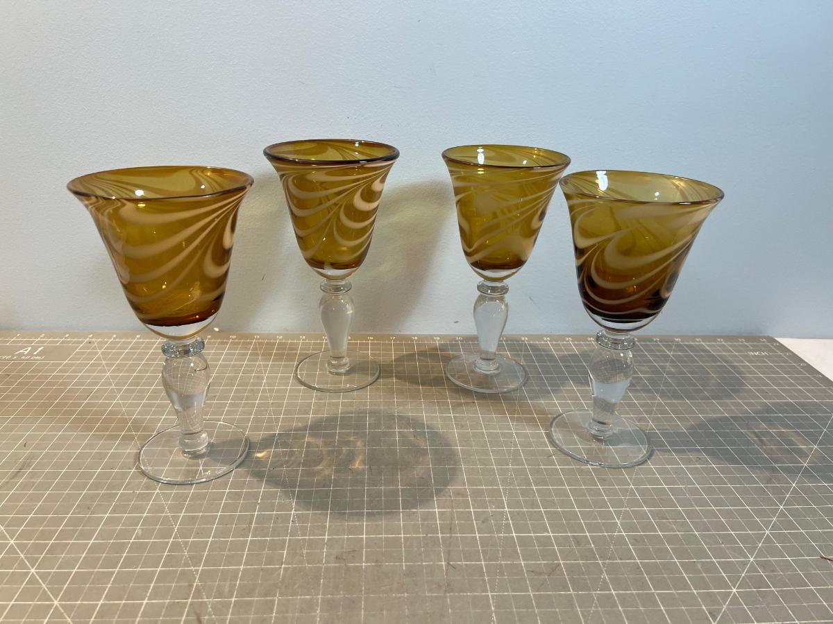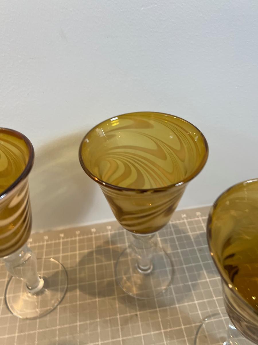 (4) Amberish - Impressive Vintage Hand Blown Modern Circa 70's Goblet