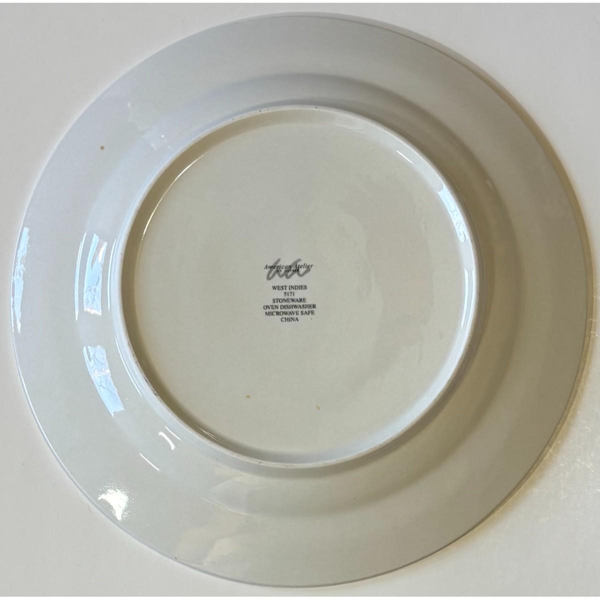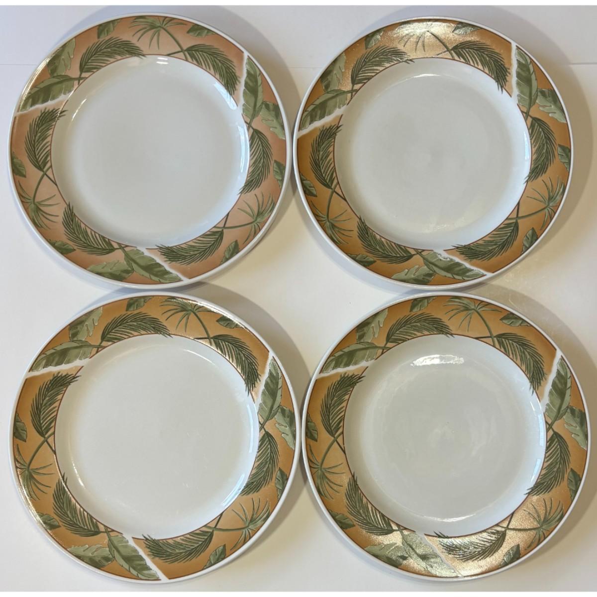 4 American Atelier West Indies 5171 Stoneware Dinner Plates Trees Leaves