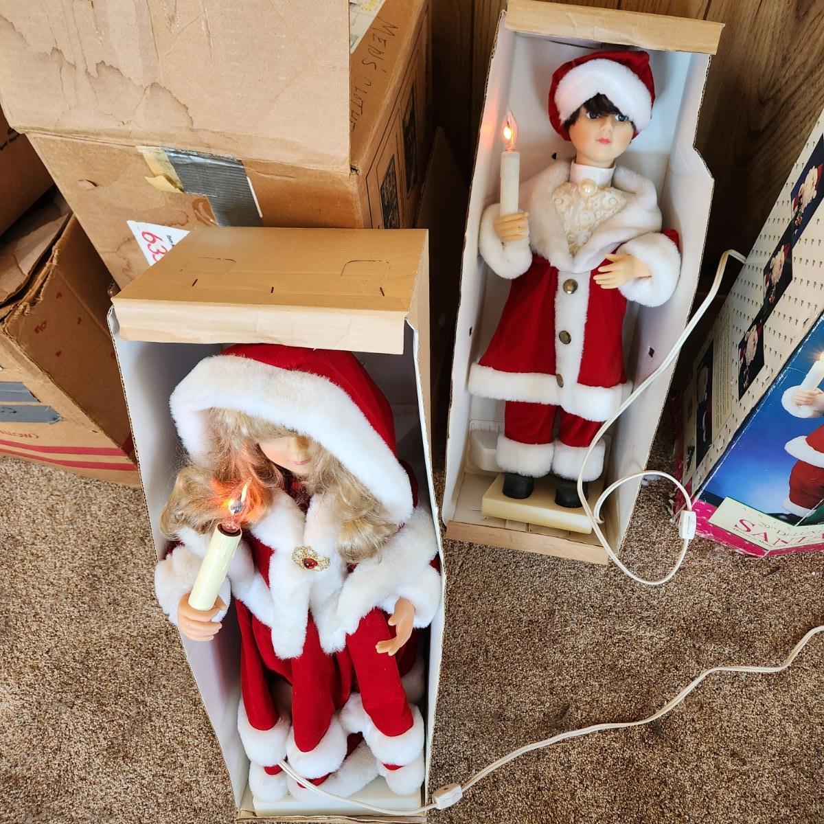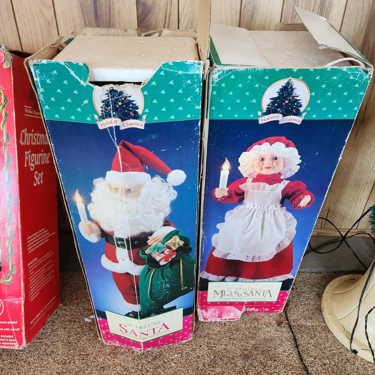 4 Animated Christmas Holiday Figurines Boy Girl Mr. Christmas 29" Santa and 27"Mrs Santa Tested