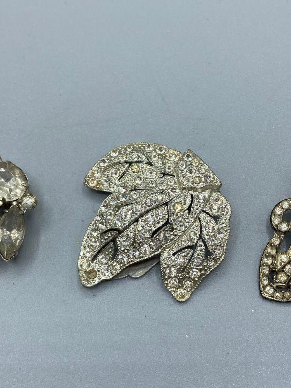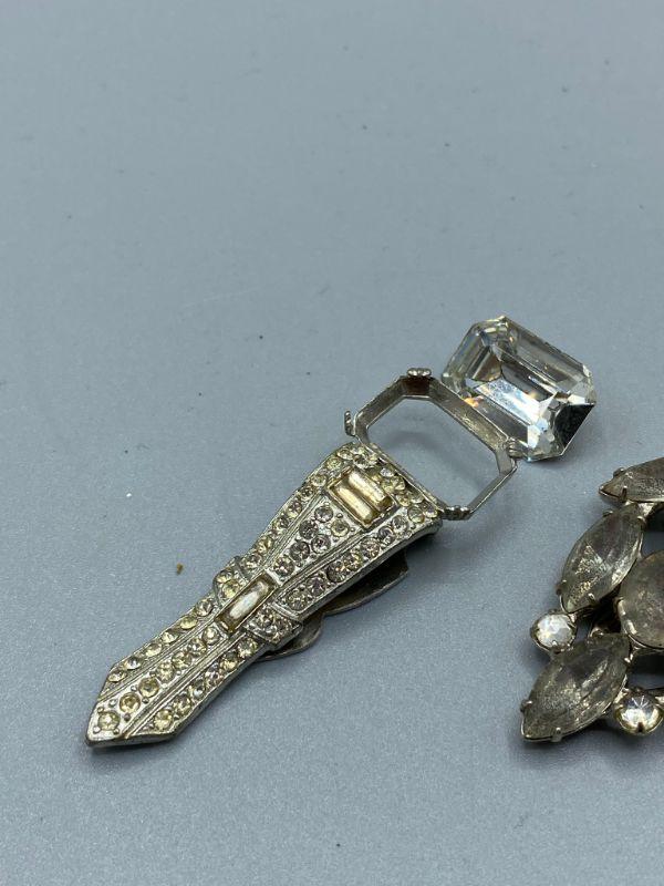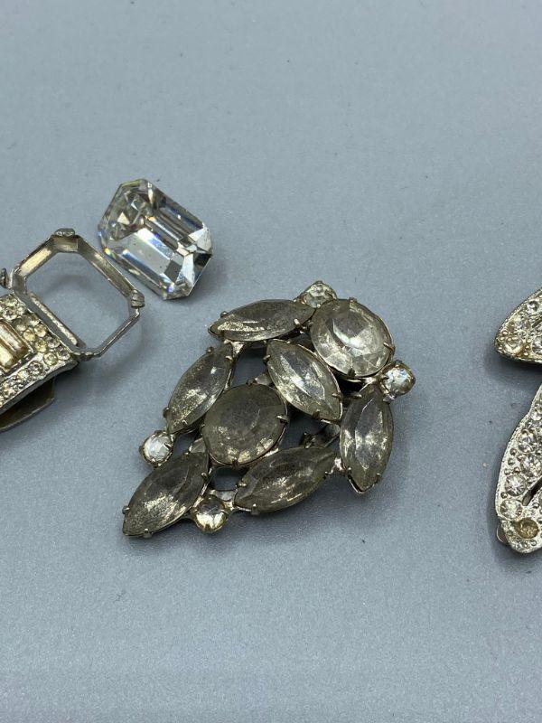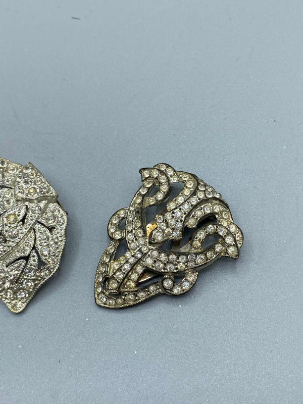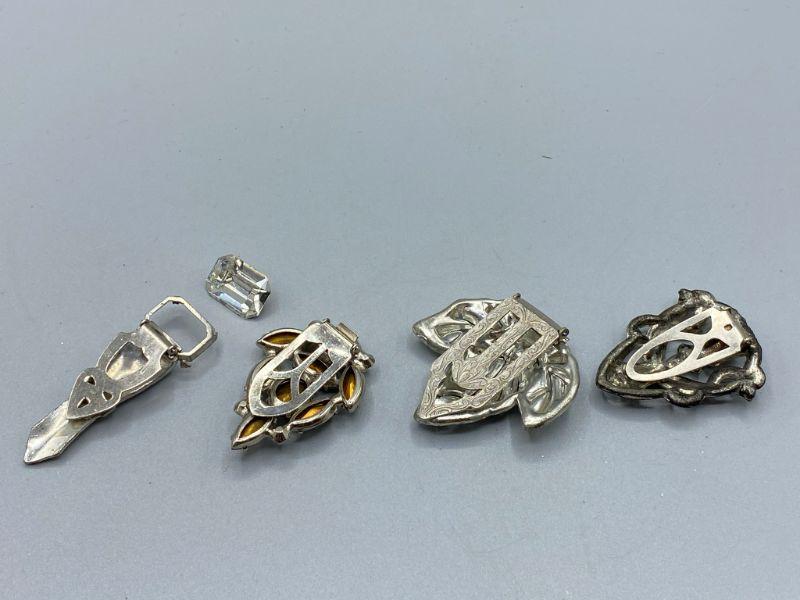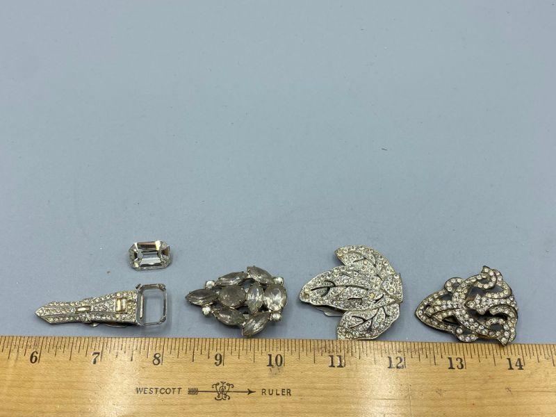 Set of 4 single shoe clips. Great for projects or other accessory uses. One needs the large stone placed back in and one has a couple stones missing.