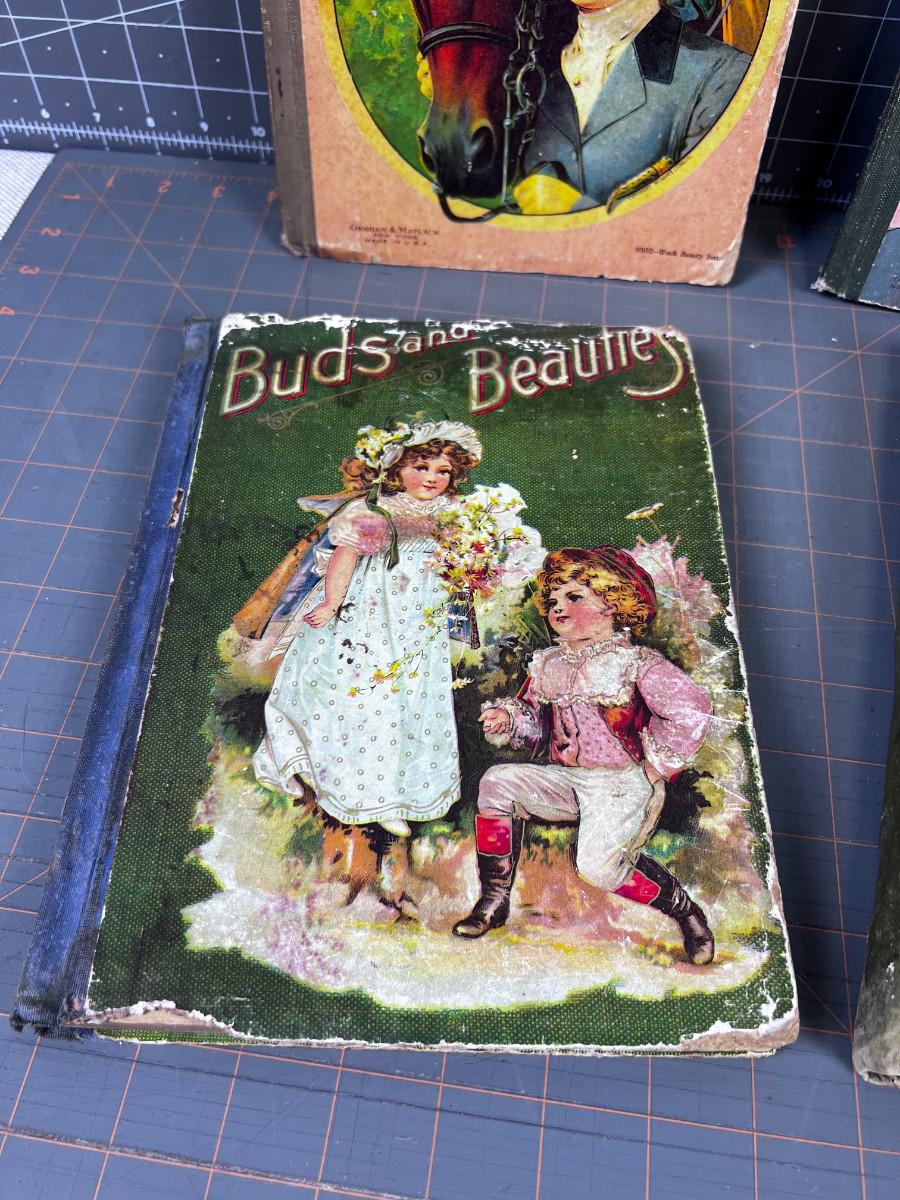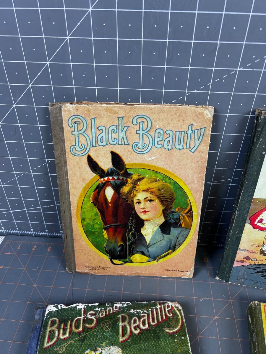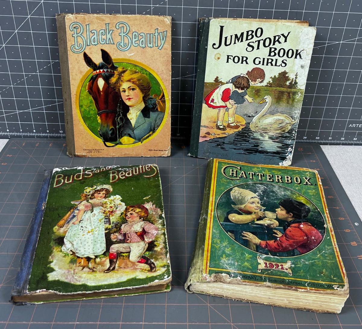 4 ANTIQUE STORY BOOKS: Chatter Box, Black Beauty, Buds & Beauties,