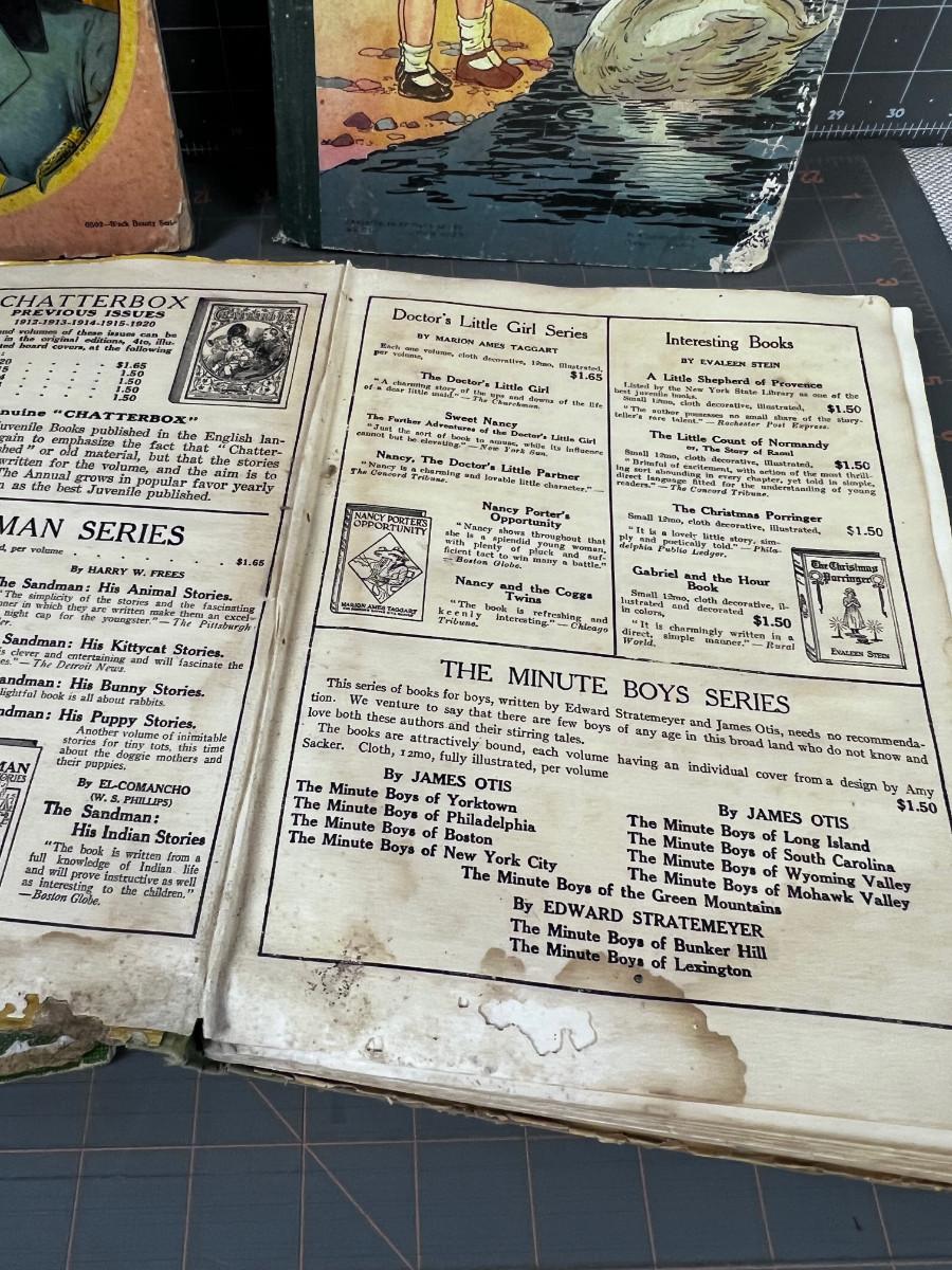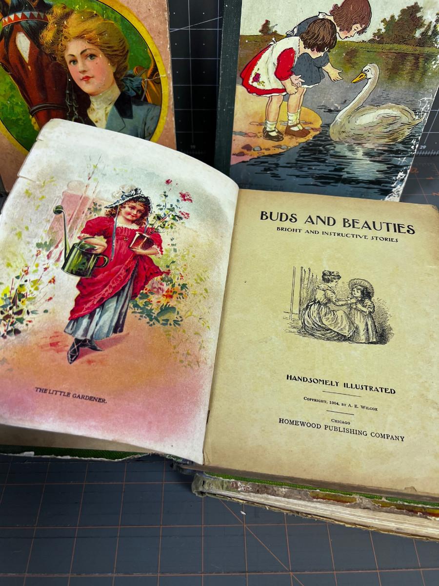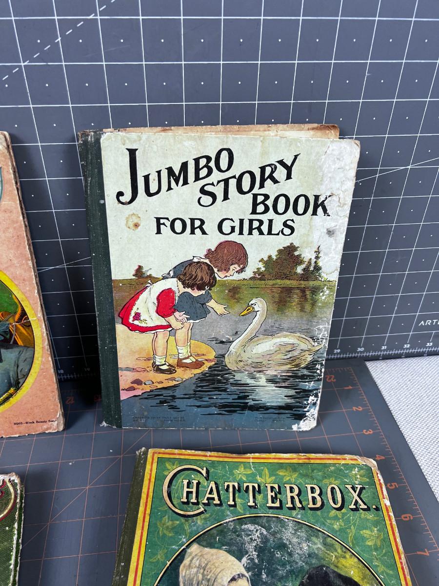 4 ANTIQUE STORY BOOKS: Chatter Box, Black Beauty, Buds & Beauties,