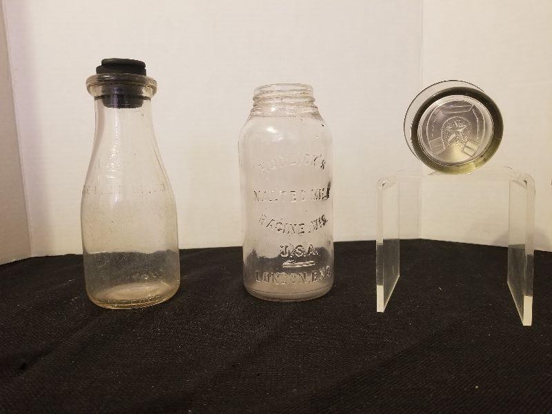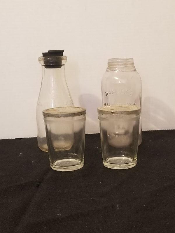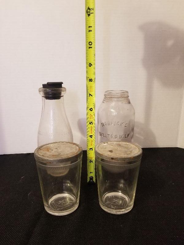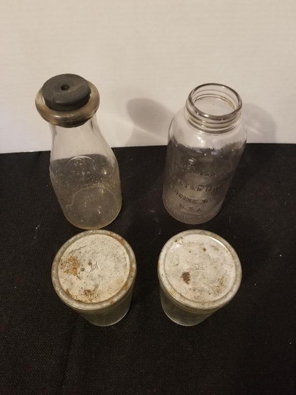 The 2 small jars look like zinc lids and on the bottoms is a horseshoe with start stamp