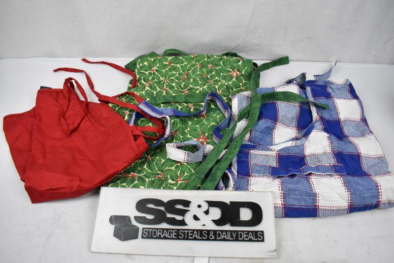 4 Aprons: 1 red, 2 Green/Christmas, 1 Red/White/Blue