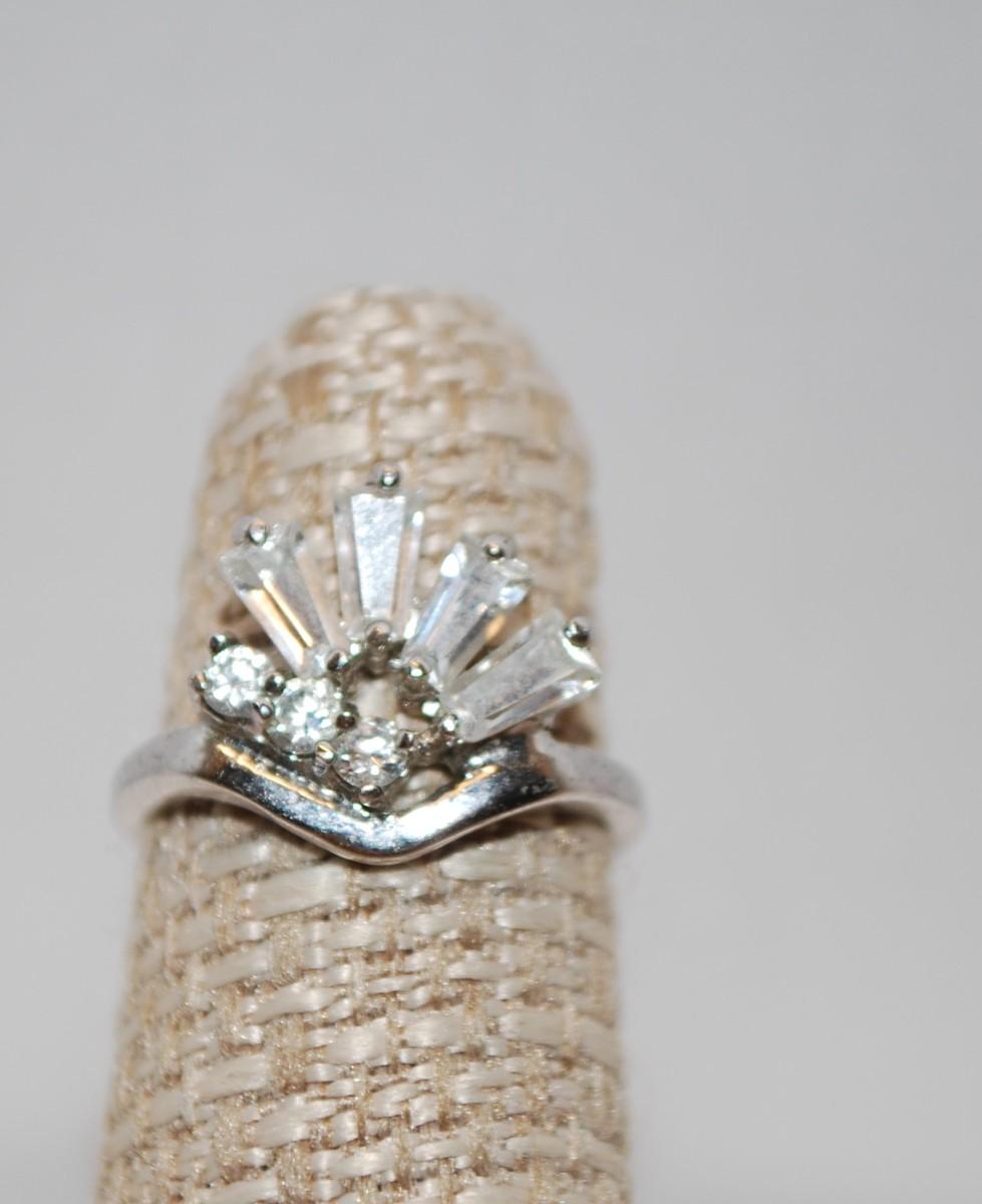 4 Baguettes & 3 Round Cubic Zirconia on a Silver-Tone Band (2.5g) Size 5