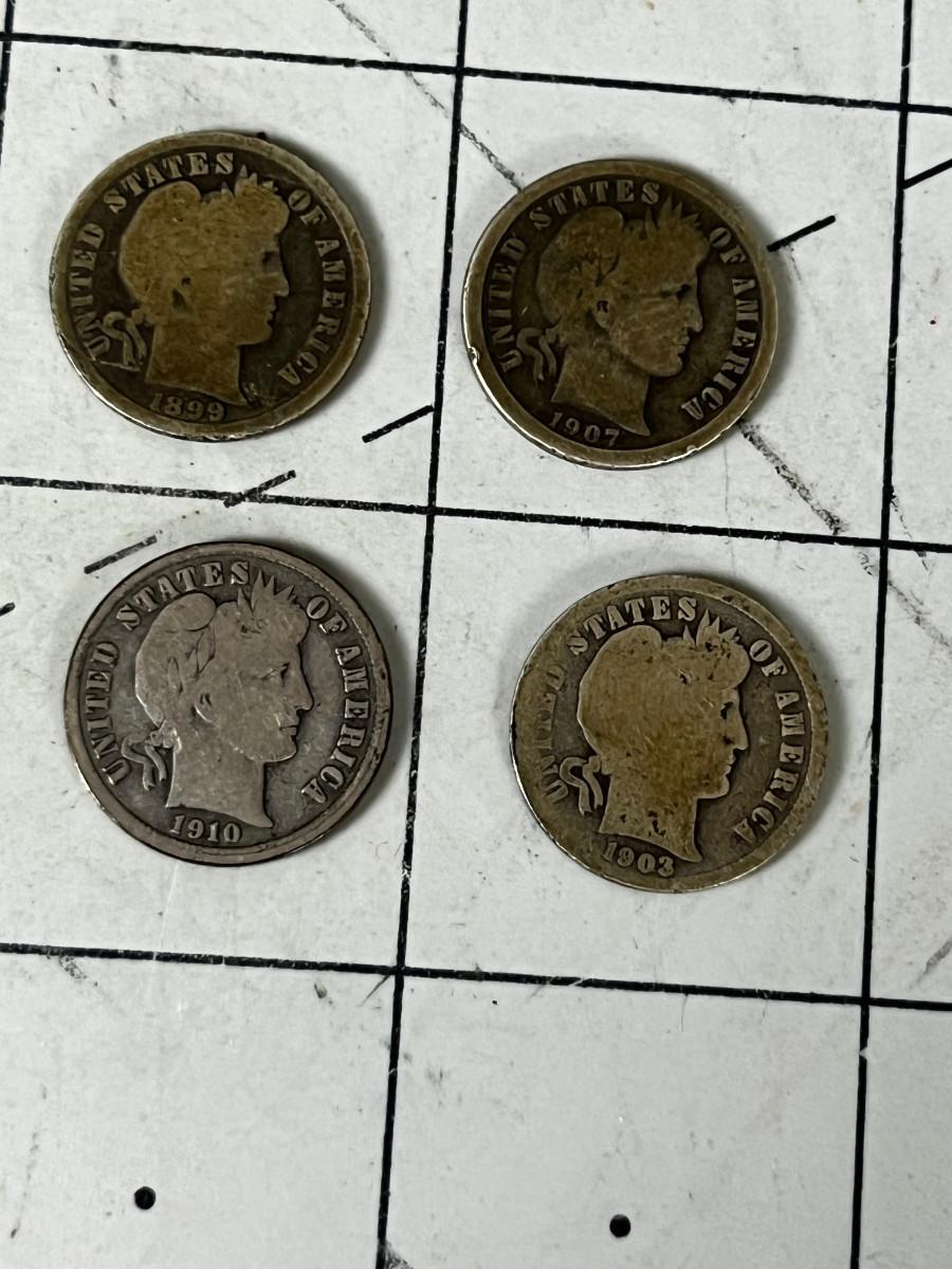 4 Barber Dimes 1899, 1903, 1907, 1910