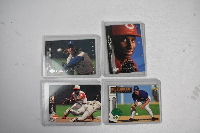 4 Baseball Cards: Johnson, Kelly, Larkin, Mattingly 1994