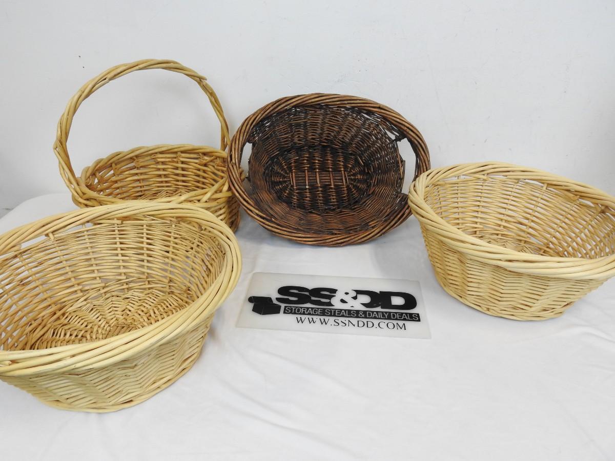 4 Baskets: 3 Light Brown, 1 Dark Brown with side handles. 1 with Tall Handle,