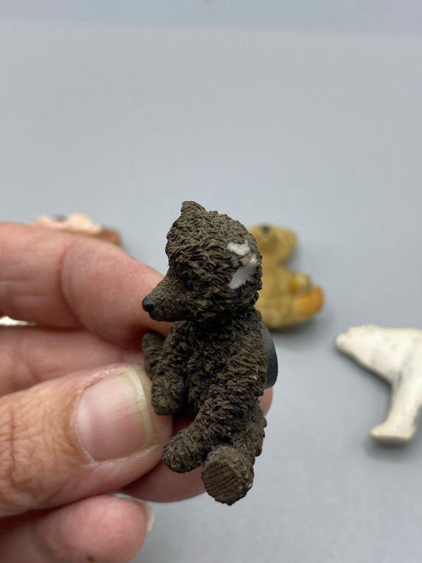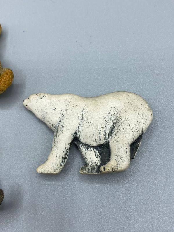 Set of 4 bear fridge magnets. Cute for the bear collector. There are a couple issues. The large bear looks like something might be missing from the center of the heart, little dark brown bear missing an ear, and the polar bear is missing a hind leg. Could use a little TLC or added to a project.
