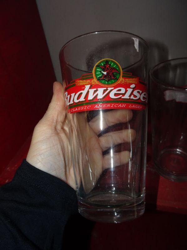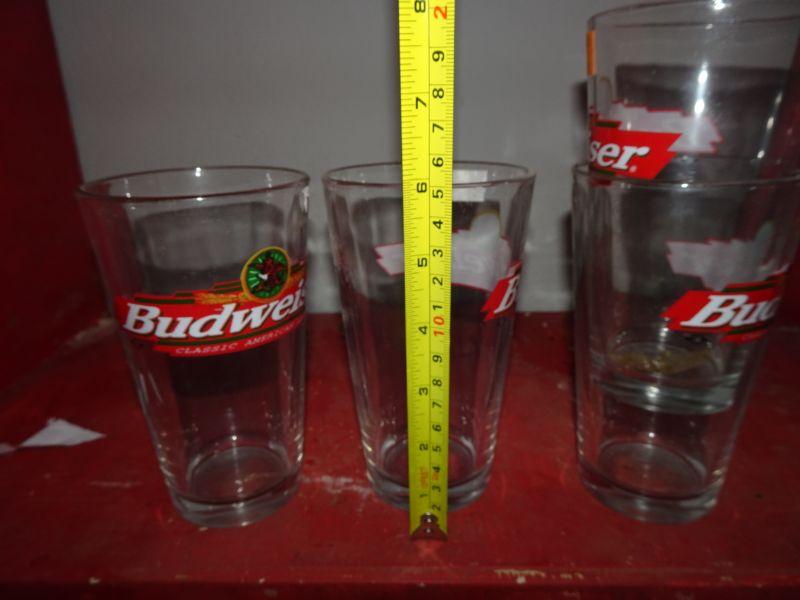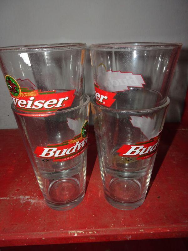 4 Beer Glasses, Budweiser Beer - Mancave, Barware