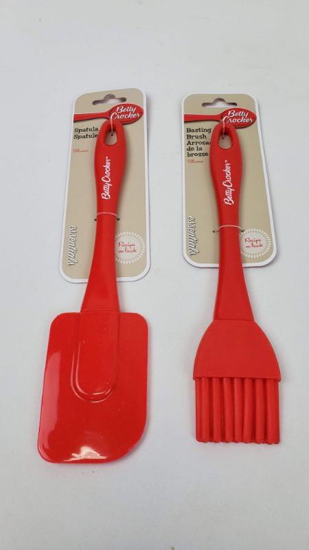 4 Betty Crocker Kitchen Items, Red Spatula & Basting Brush, Scissors & 2 Cup Measuring Cup - New