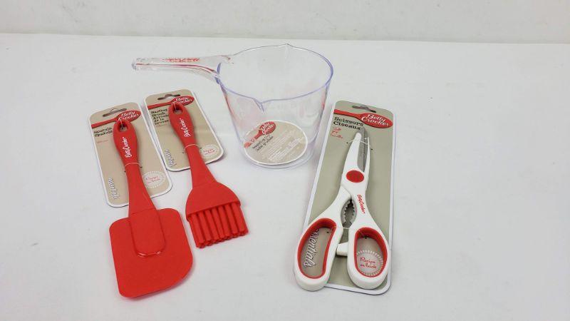 4 Betty Crocker Kitchen Items, Spatula, Basting Brush, Scissors & 2 Cup - New