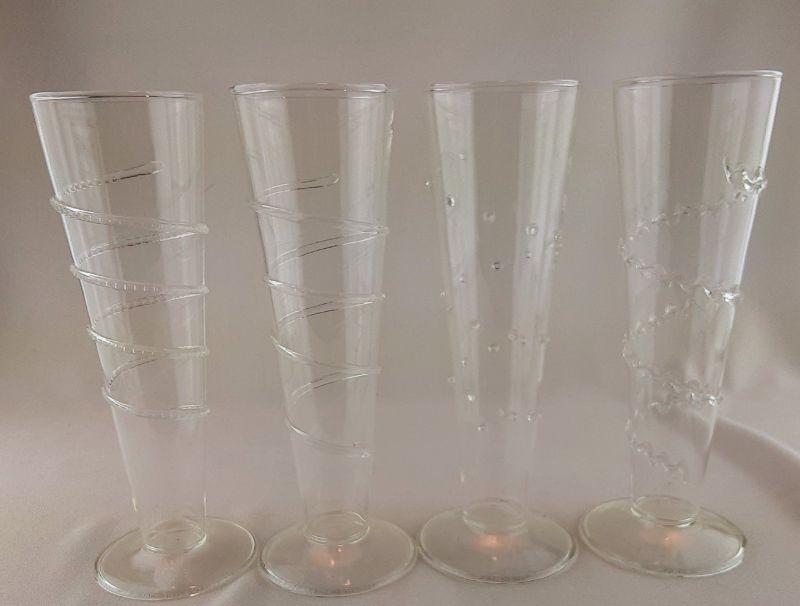 Fun fun fun footed glass flutes. Measures 7in. tall and 2in. diameter.