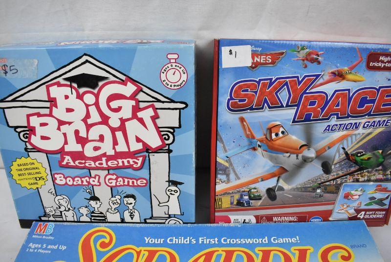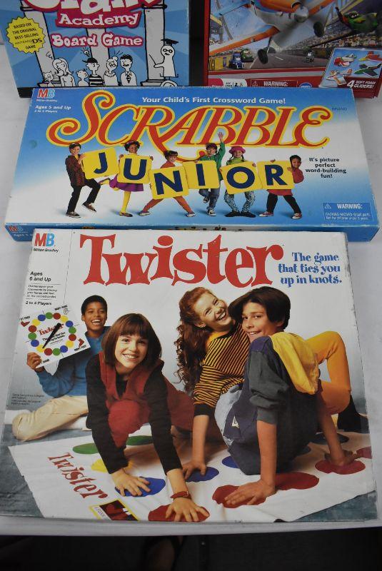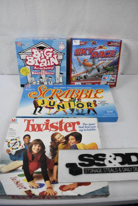 4 Board Games, Complete: Big Brain, Sky Race, Scrabble Junior, & Twister