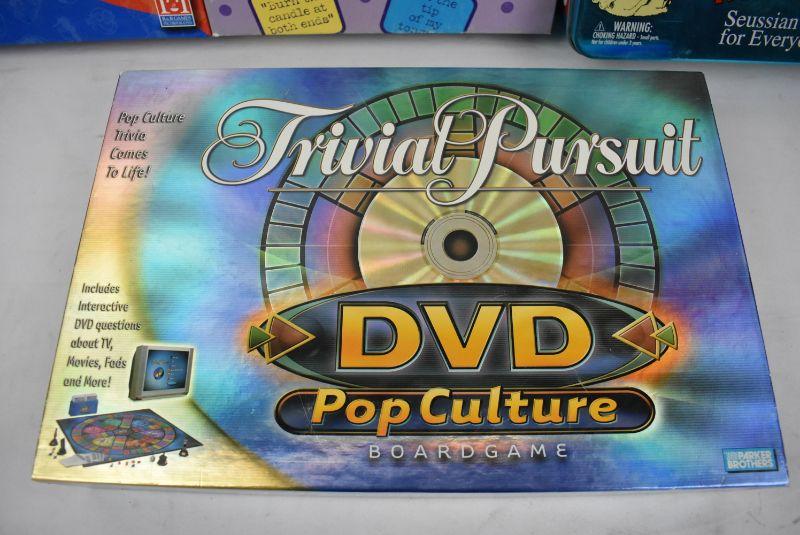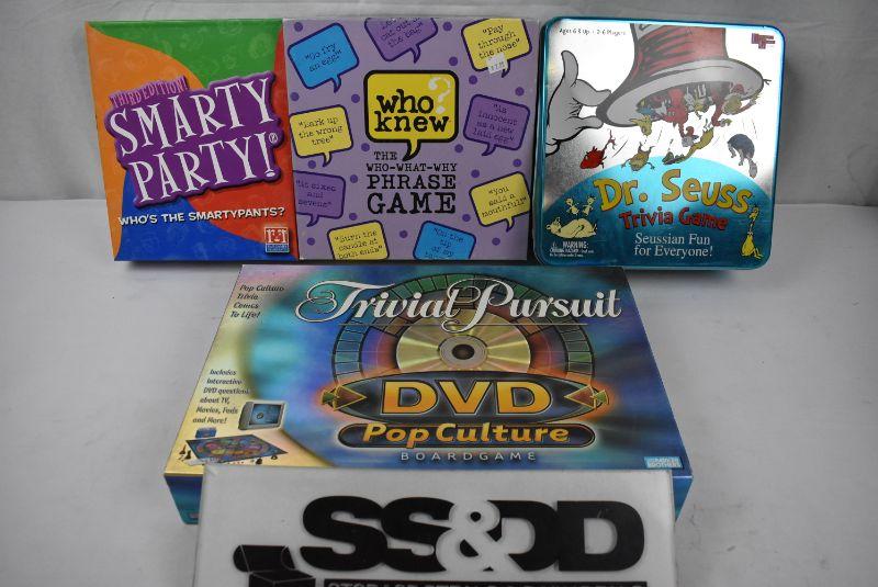 4 Board Games, Complete: Smarty Party, Who Knew, Dr Seuss Trivia, Trivial Pursuit DVD Pop Culture