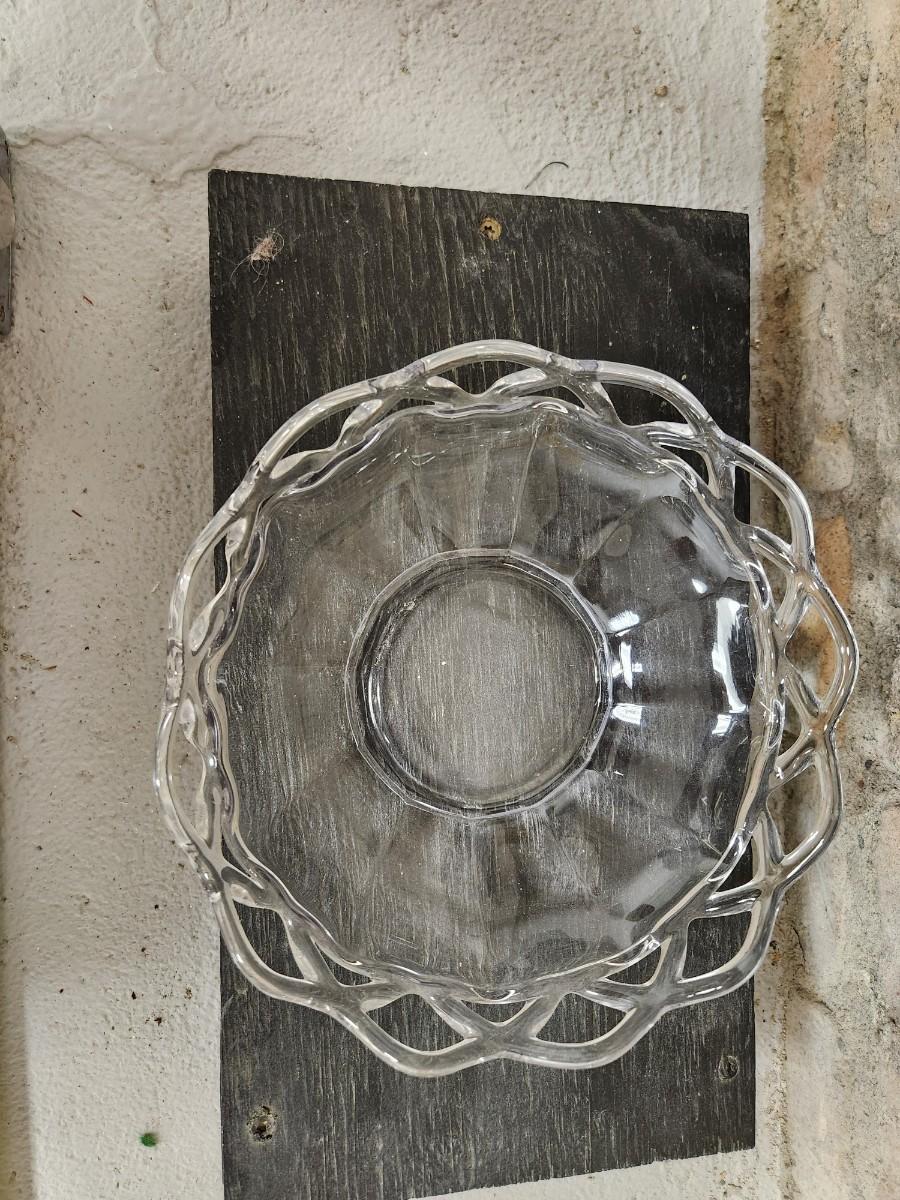2 Gotham silver plate bowls, one large crystal bowl (maybe marquise) and a waffle edge bowl.