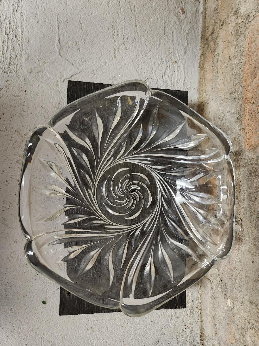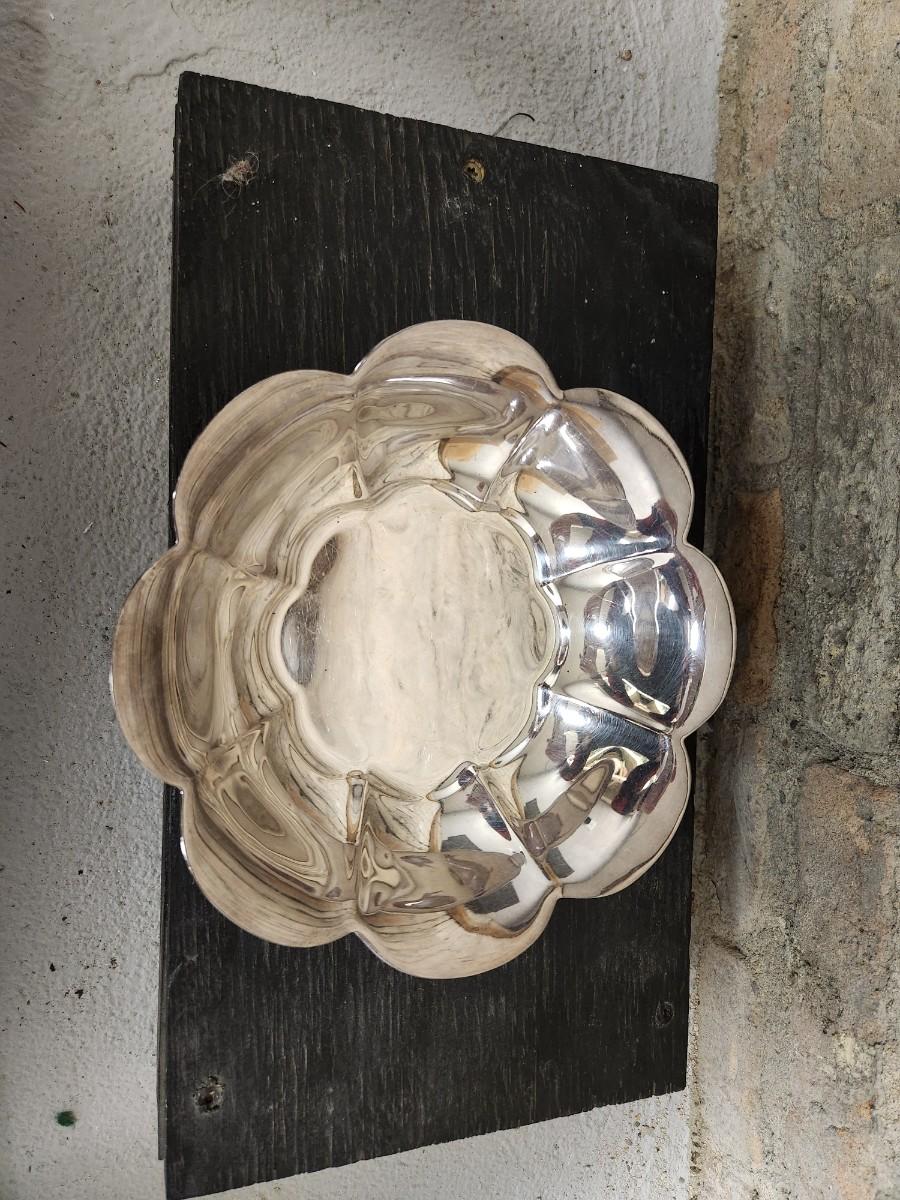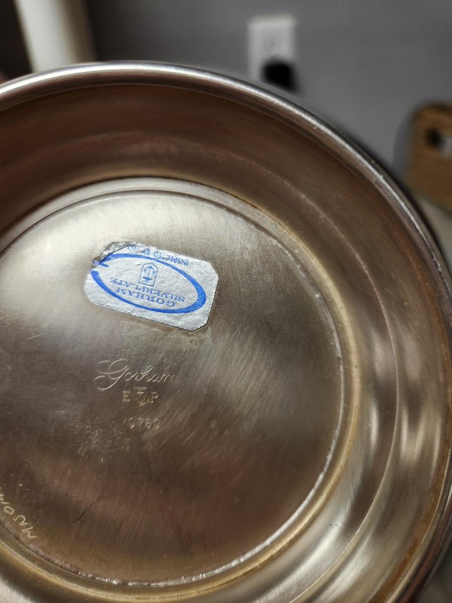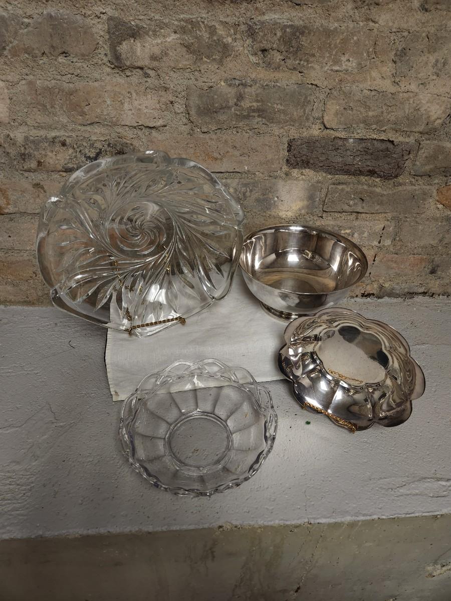 2 Gorham silver plate bowls, one large crystal bowl (maybe marquise) and a waffle edge bowl.