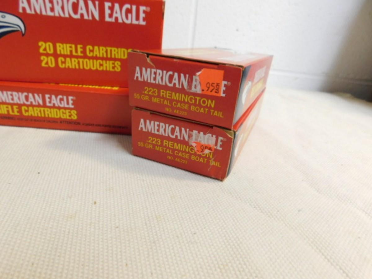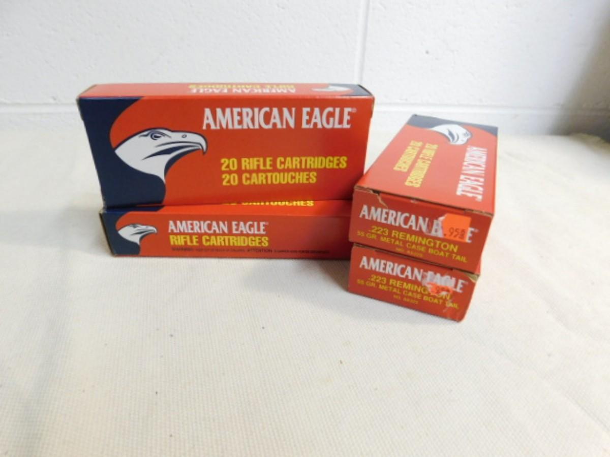 4 Boxes American Eagle 223 Remington 55 Grain MJ Boat Tail 20 Round Box