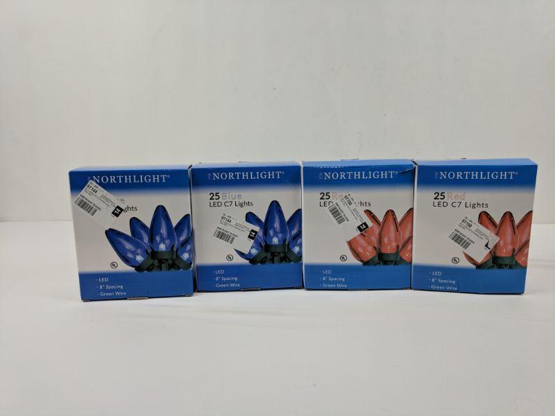 4 Boxes LED C7 Lights, 2 Bx Red, 2 Bx Blue, Northlight - New