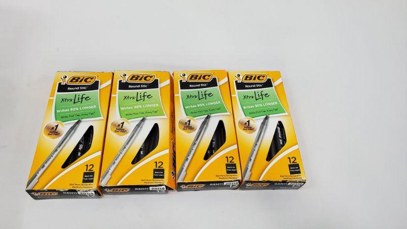 4 Boxes of BIC Round Stic, 12 ct each, 48 Pens Total, Box Damage - New