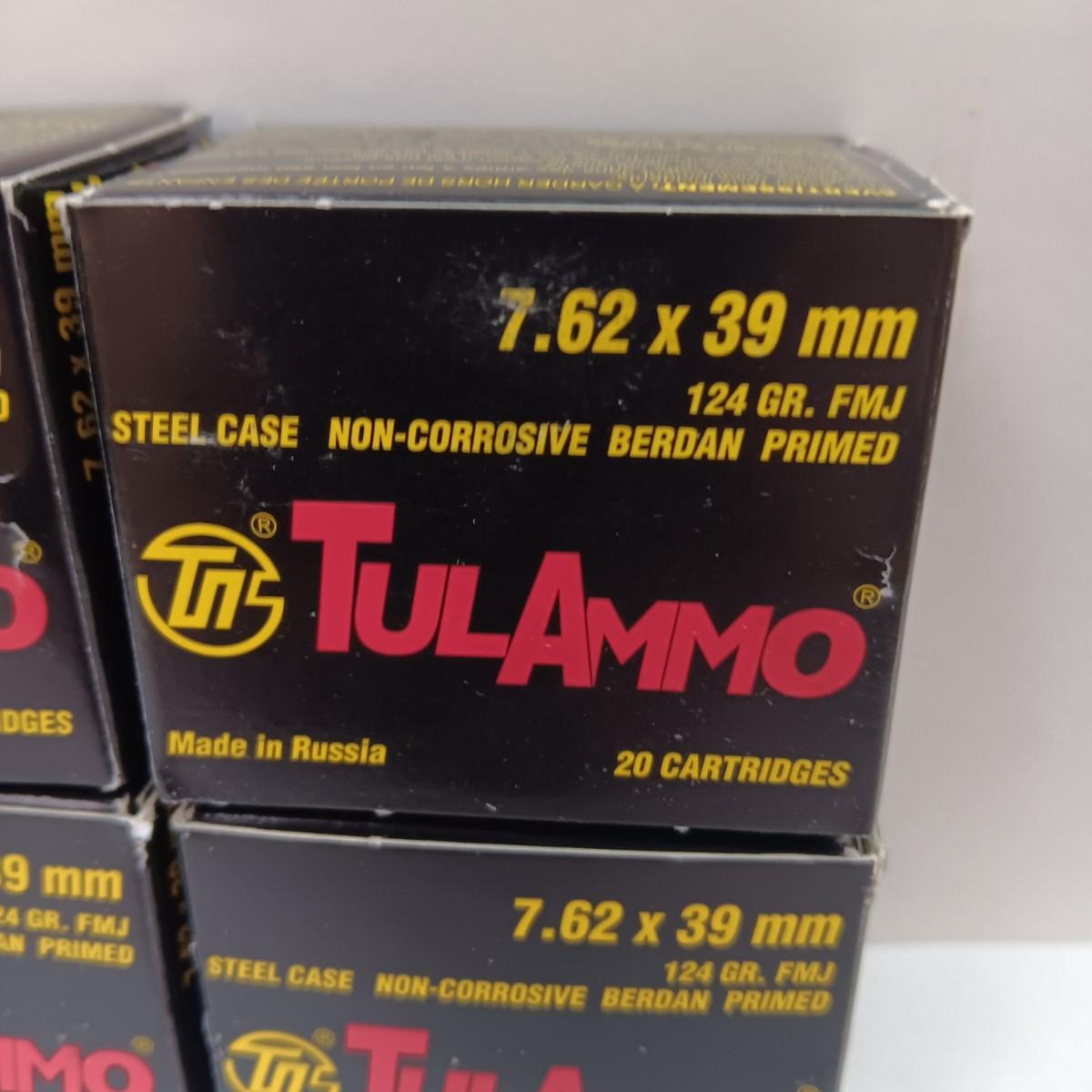 4 BOXES OF TULAMMO 7.62 X 39 mm 20 CARTRIDGES PER BOX