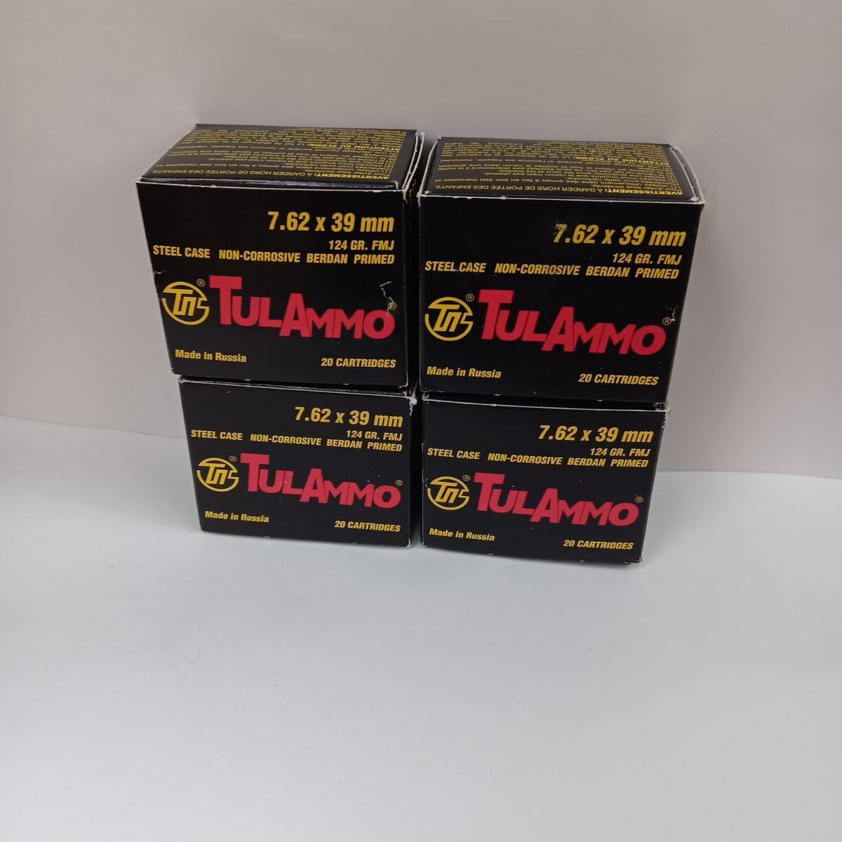 4 BOXES OF TULAMMO 7.62 X 39 mm 20 CARTRIDGES PER BOX