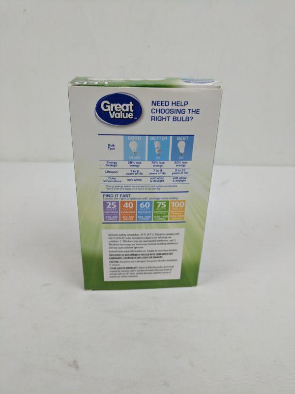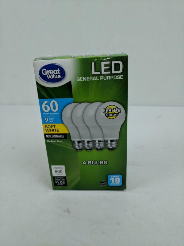 4 Bulbs, LED General Purpose, 60 Watt Equivalent, Great Value - New