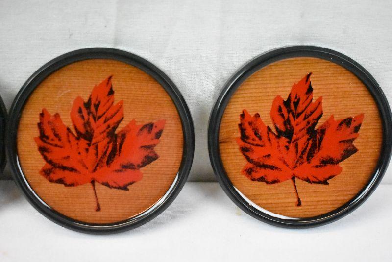 4 Cedar Coasters with Box. Hand Silkscreened, Made in Canada