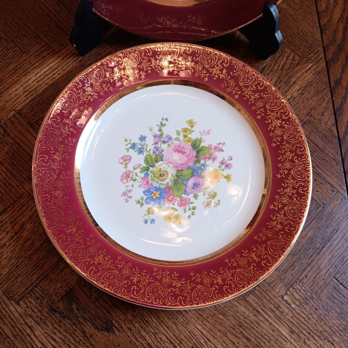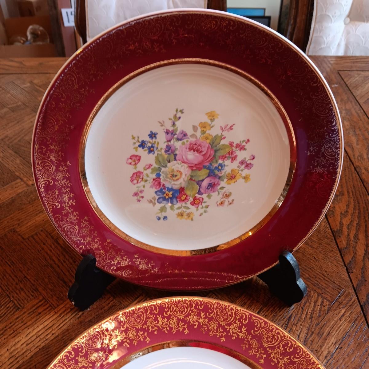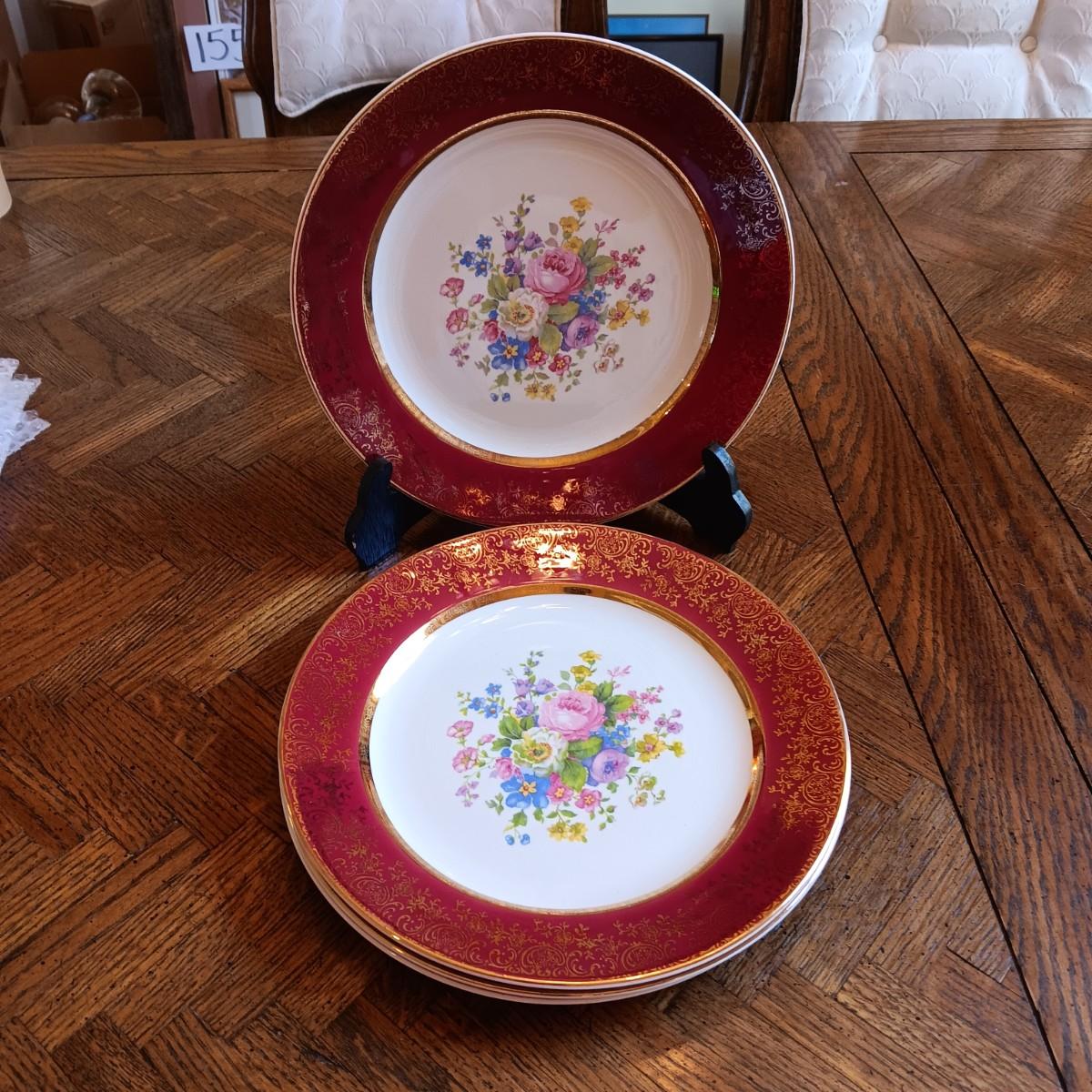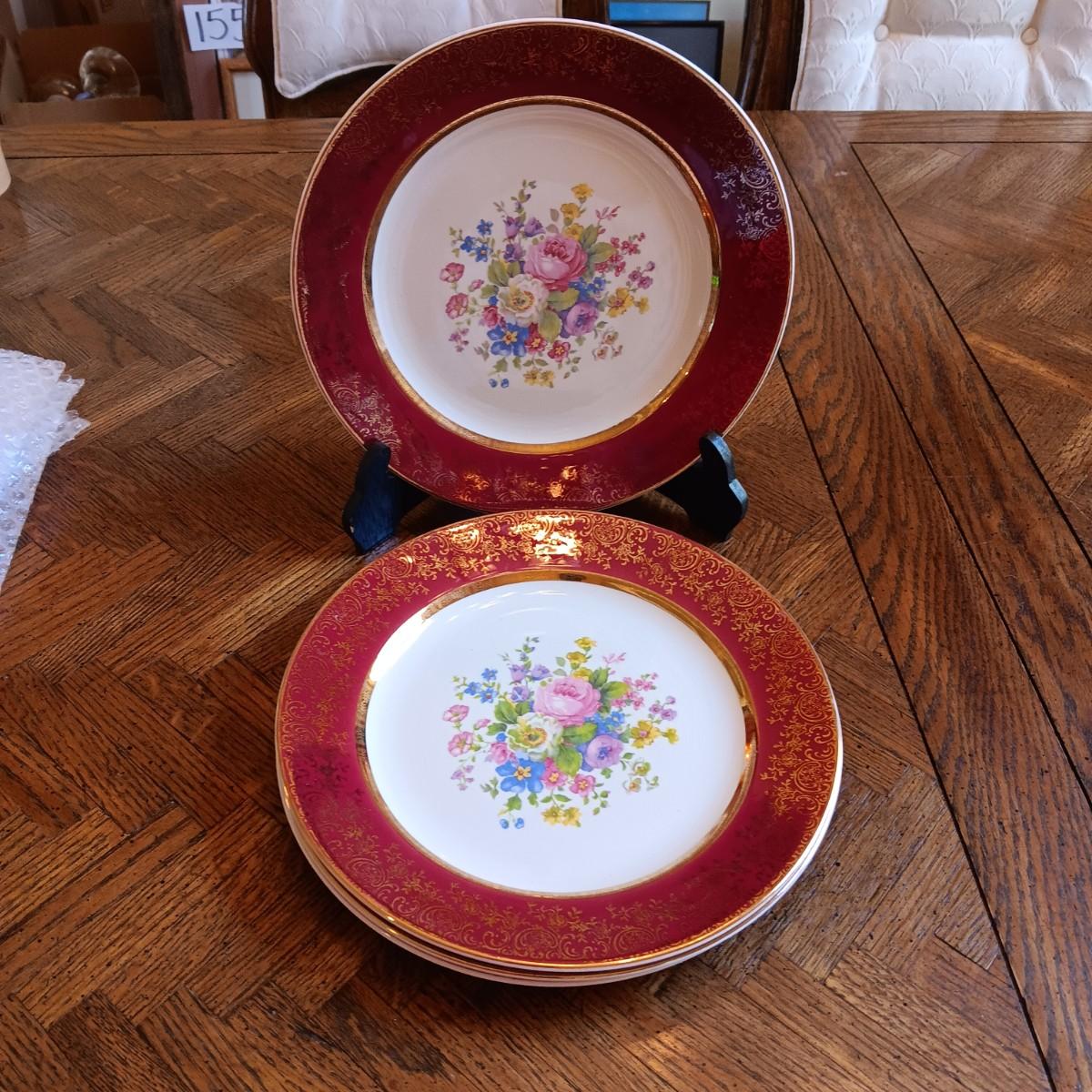 4 CENTURY BY SALEM 23K ENCRUSTED GOLD DINNER PLATES