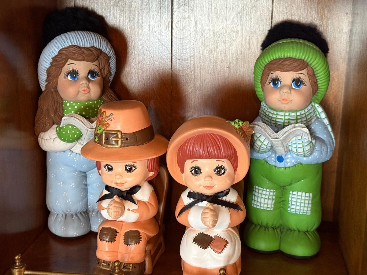 4 Ceramic dolls - 2 Pilgrim themed & 2 winter themed