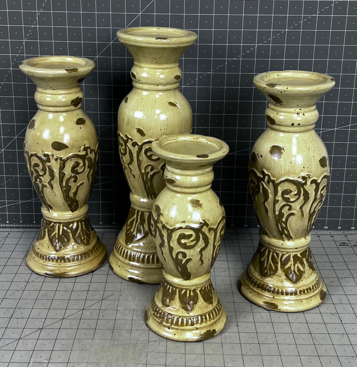4 Ceramic Terracotta Candle Sticks, Decorative Pillar (3 Sizes)