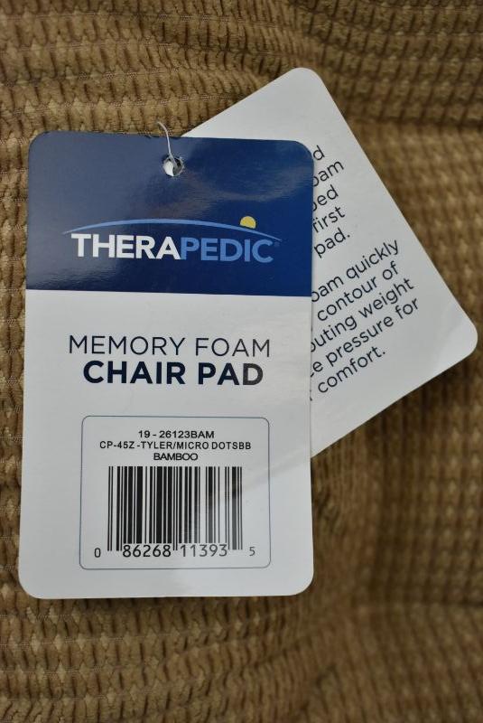 4 Chair Pads: Therapedic Memory Foam, Bamboo Brown 16"x16", $68 Retail - New