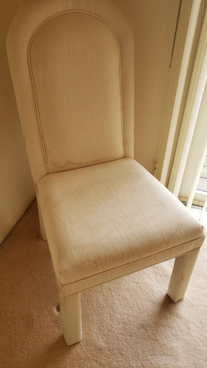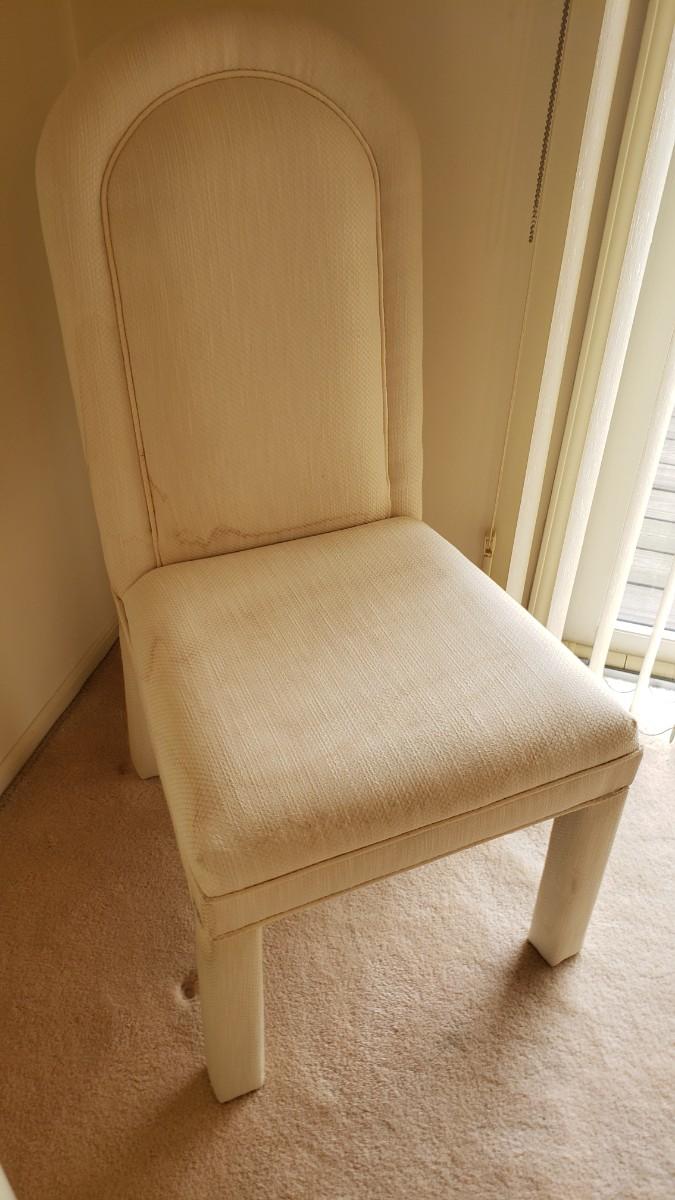 Four upholstered chairs, with stains