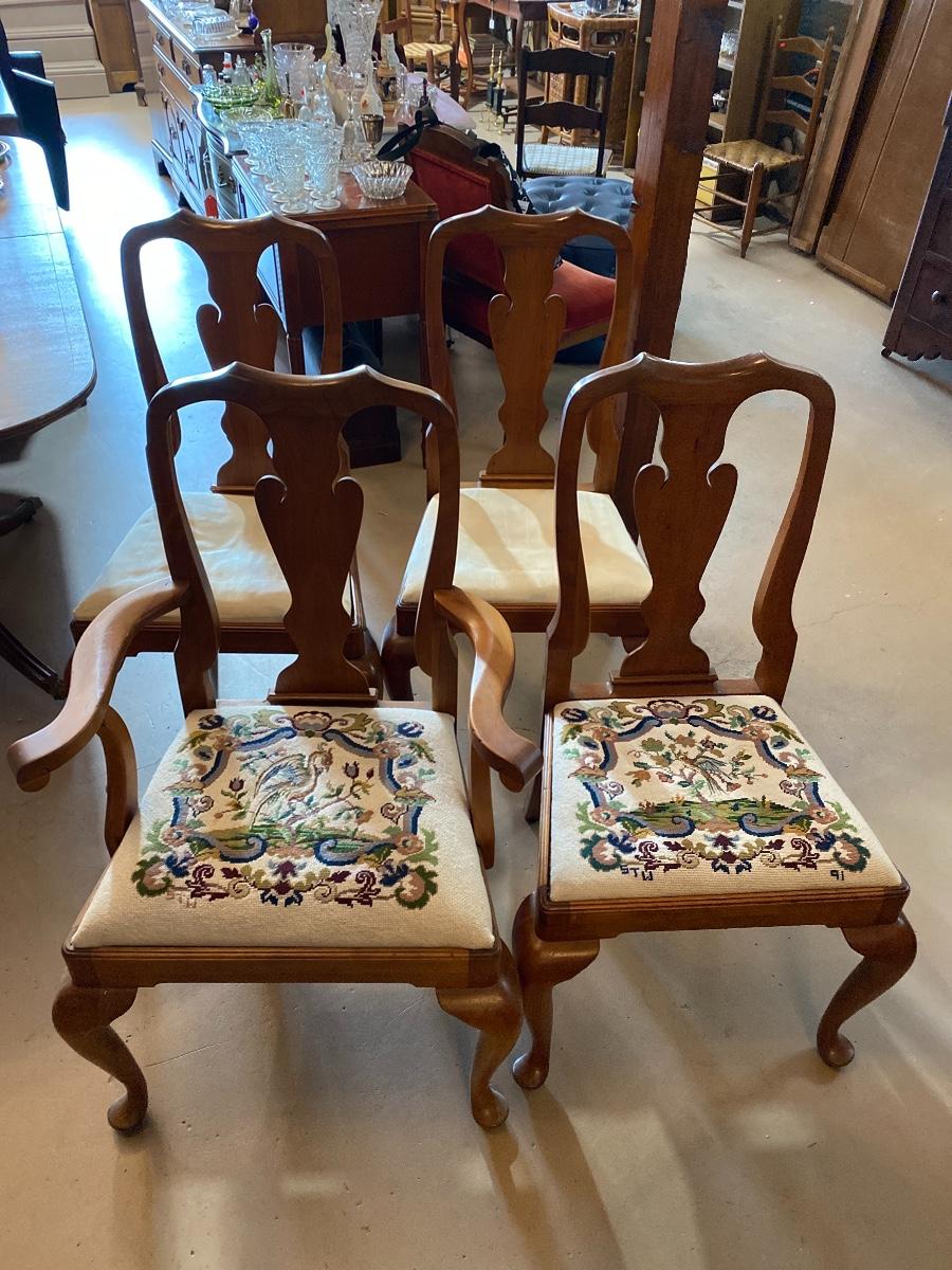 4 Cherry Dining Chairs Queen Anne Style Captains Chair