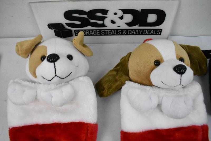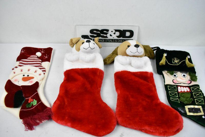 4 Christmas Stockings: Snowman 2 Dogs, Nutcracker