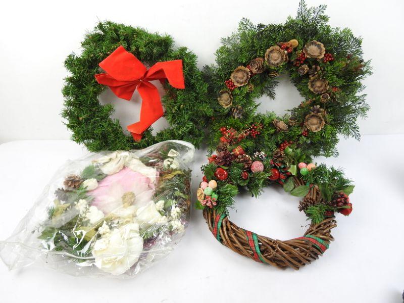 4 Christmas Wreaths, Varying Sizes and Styles Roughly 16"