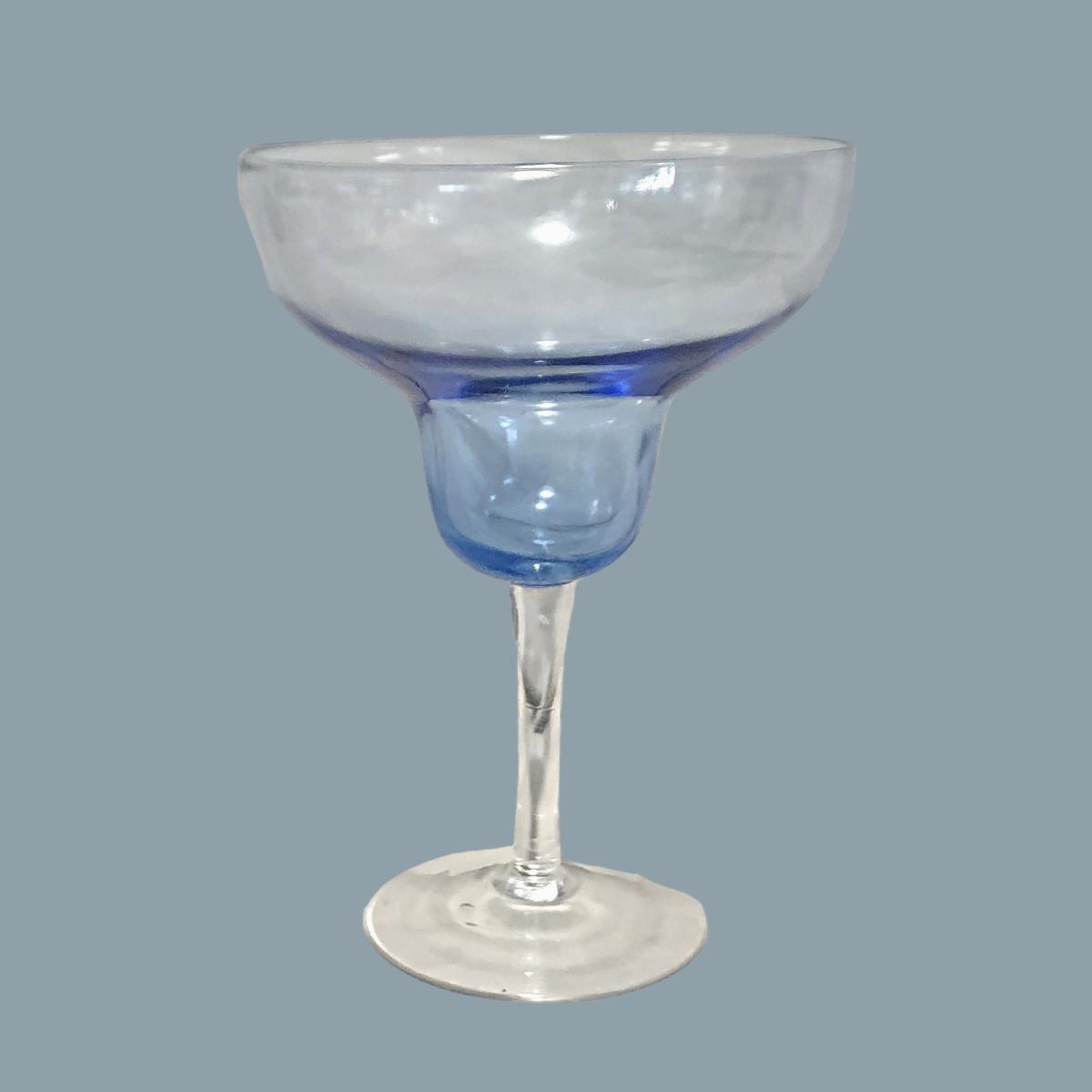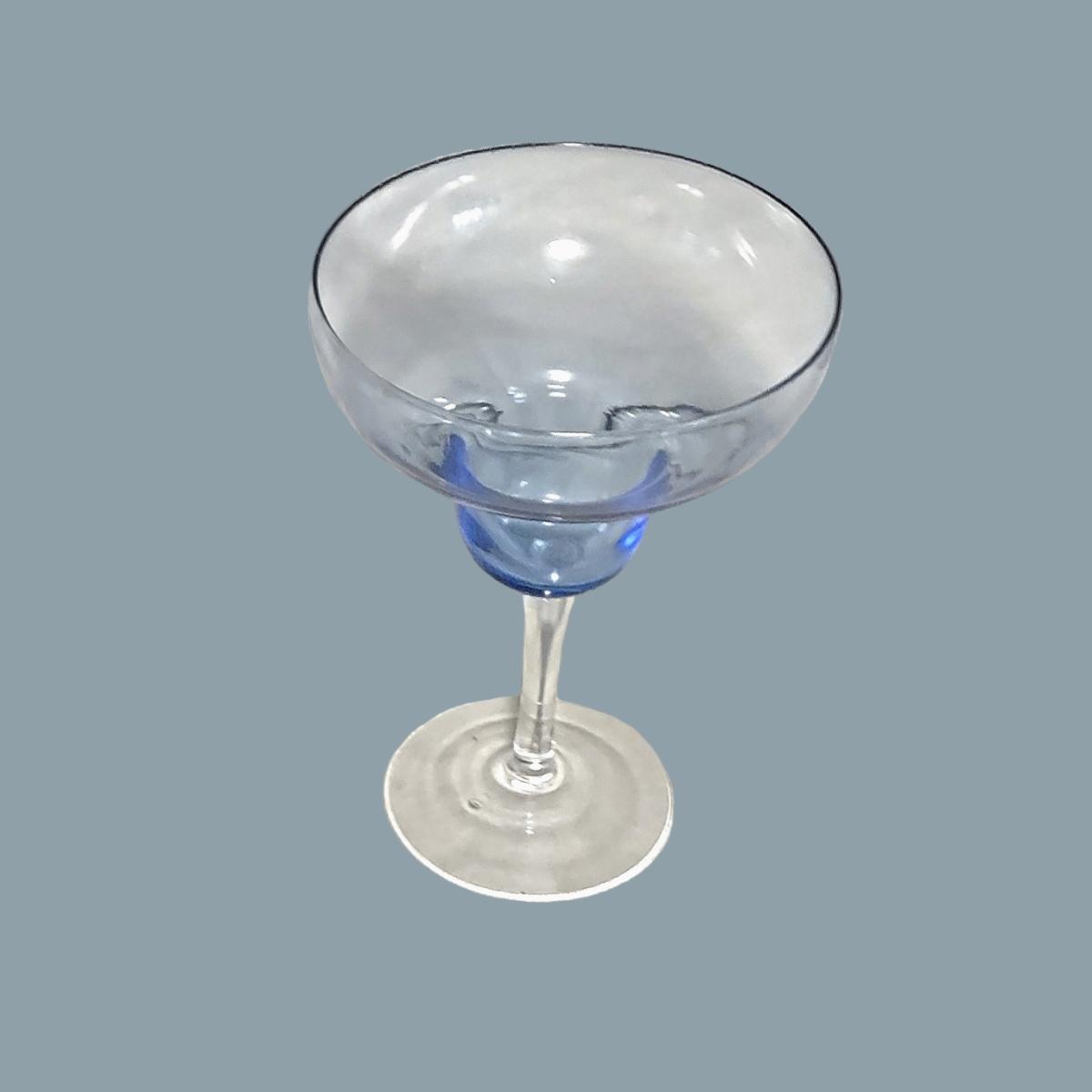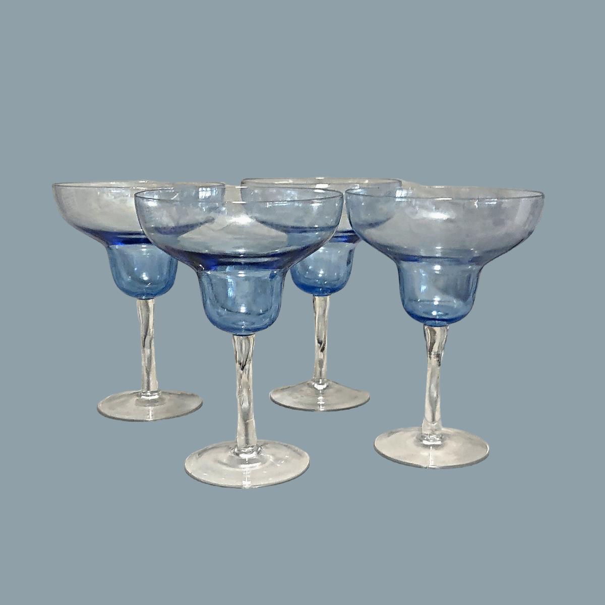 4 Clear & Blue Glass Margarita Glasses